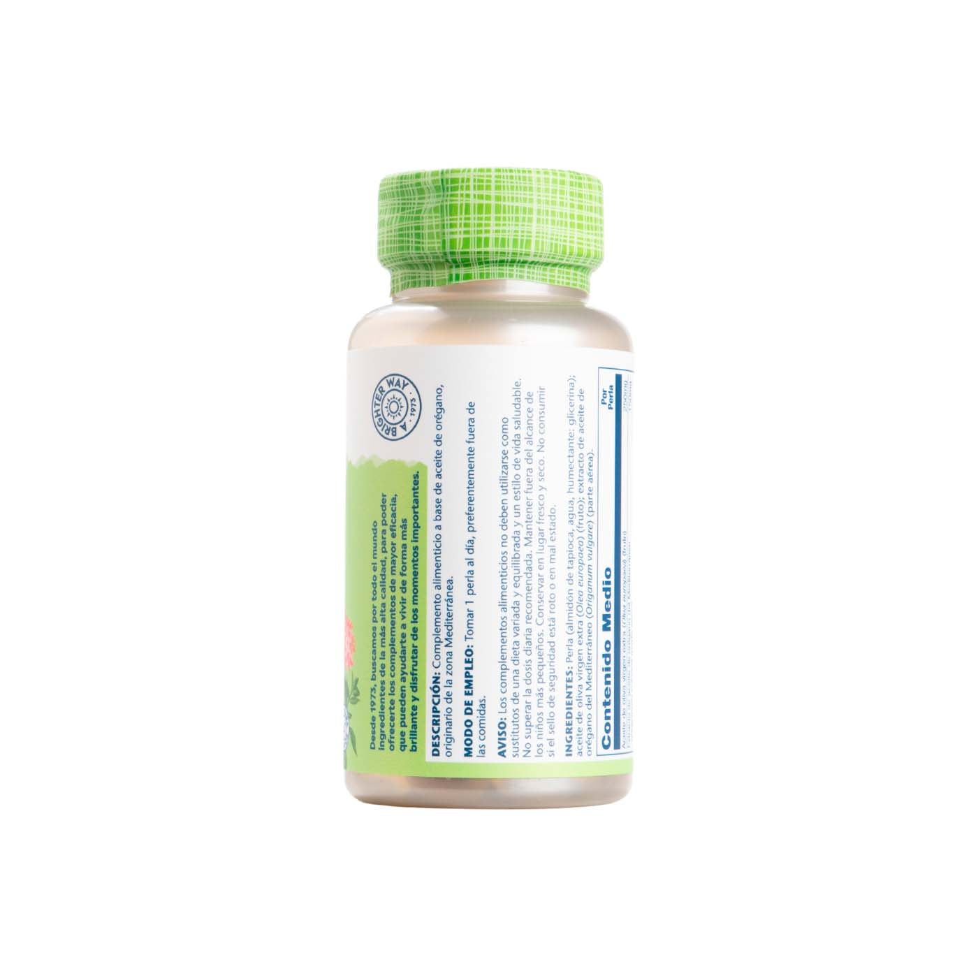 El Oil of Oregano de Solaray es un complemento alimenticio en forma de perlas que contiene aceite de orégano (Origanum vulgare) extraído de las partes aéreas de la planta. Cada perla aporta 150 mg de extracto de aceite de orégano. La fórmula incluye aceite de oliva extra virgen como vehículo, para mejorar la absorción y suavizar su digestión.