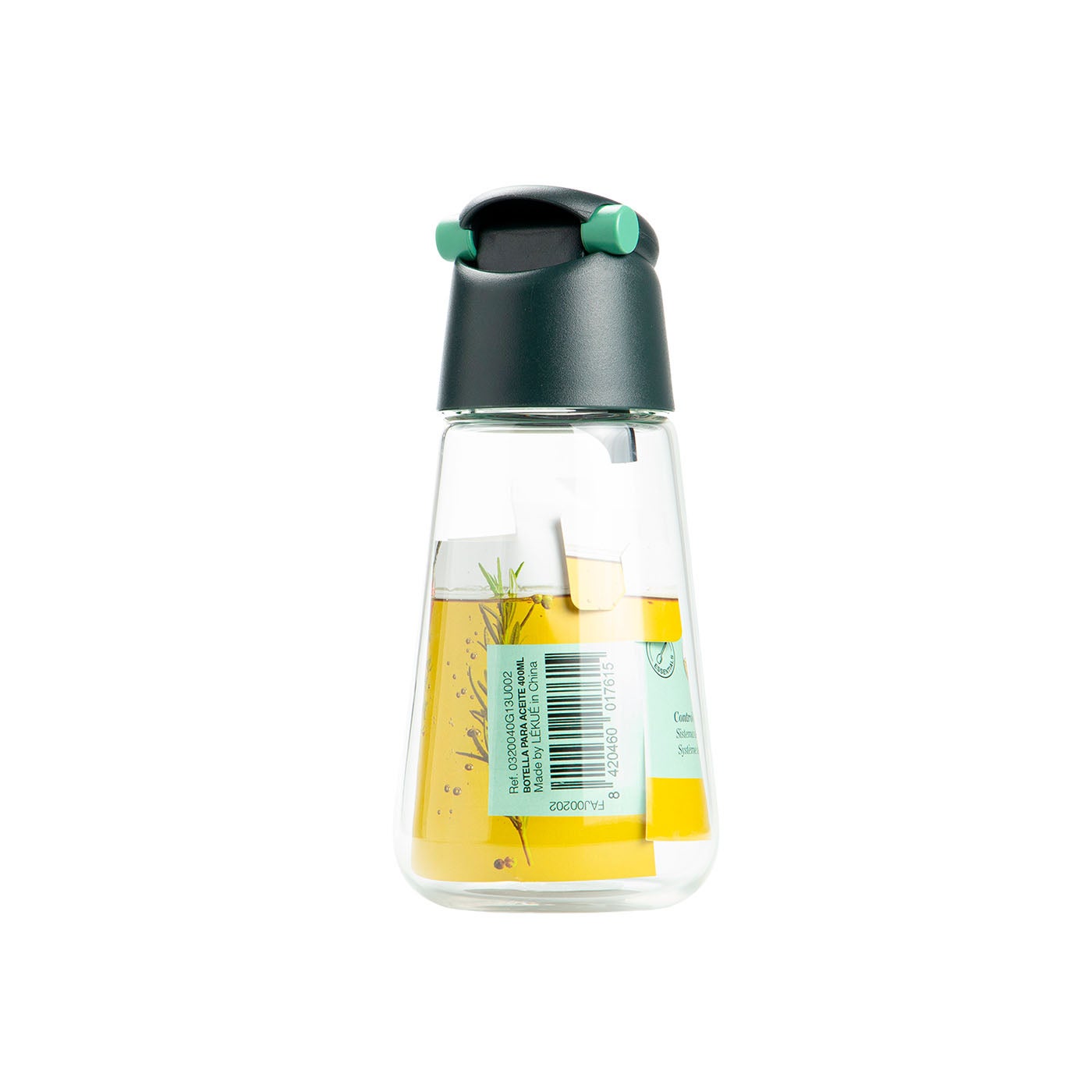 Se caracteriza por su sistema regulador progresivo, que permite controlar la cantidad de líquido que se vierte según las necesidades específicas, ya sea para aderezar una ensalada, una tostada o para freír alimentos. Con una capacidad de 400 ml, esta aceitera antigoteo de vidrio asegura una cocina sin complicaciones, reduciendo la necesidad de rellenarla con frecuencia.