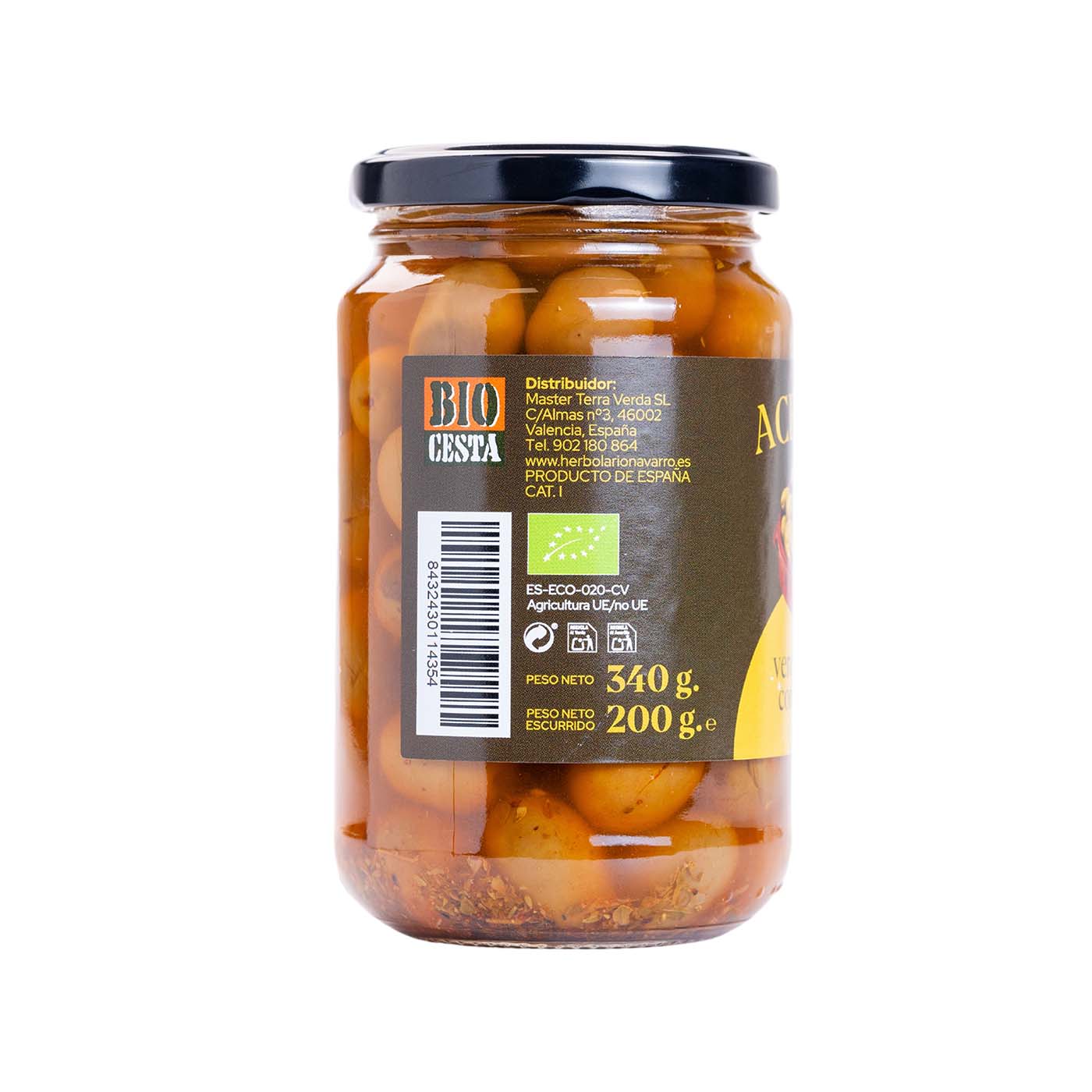 Aceitunas Verdes Partidas con Especias 340g Bio Cesta