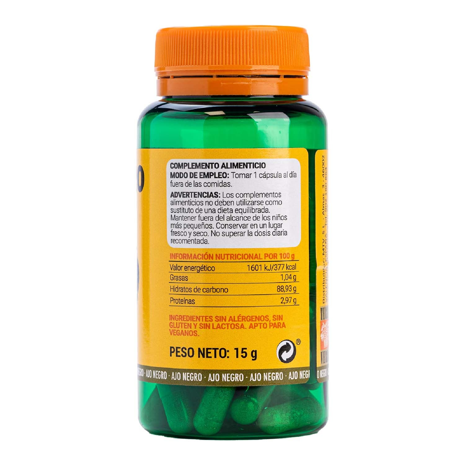 Advertencias: No superar la dosis diaria recomendada. Mantener fuera del alcance de los niños más pequeños. Los complementos alimenticios no deben utilizarse como sustituto de una dieta variada y equilibrada ni de un estilo de vida saludable. Conservar en lugar fresco y seco.