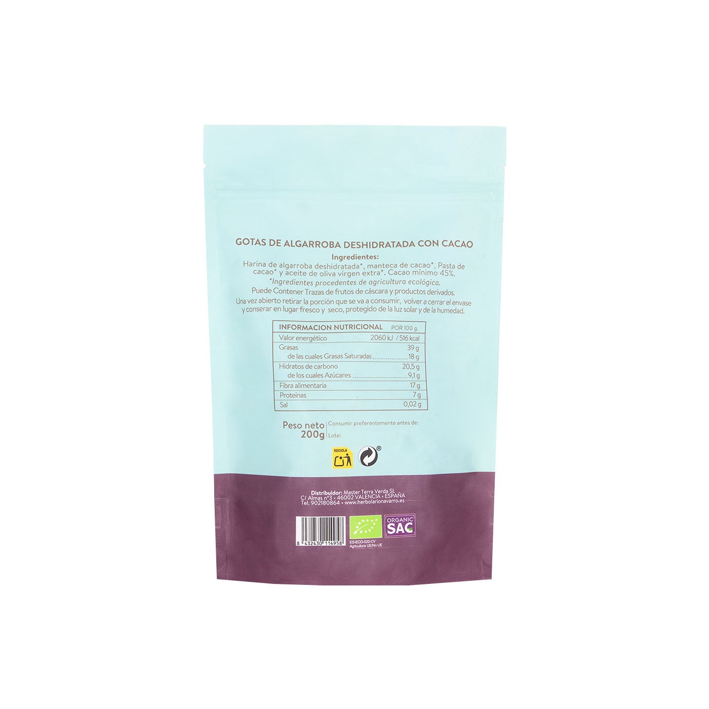 Algarroba Deshidratada en Gotas 200g Organic Sac