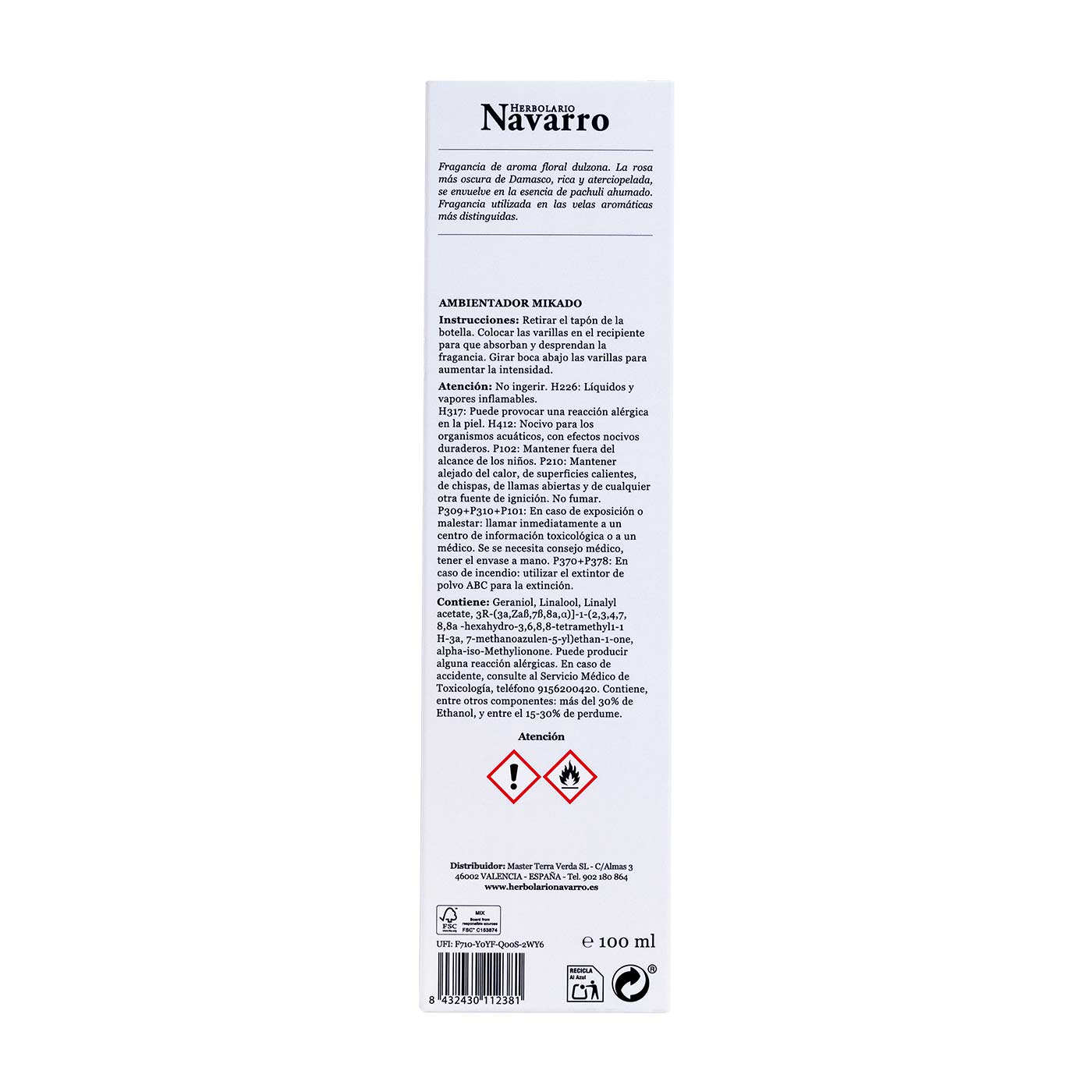 Ambientador Mikado Aroma Rosa y Pachuli 100ml Herbolario Navarro