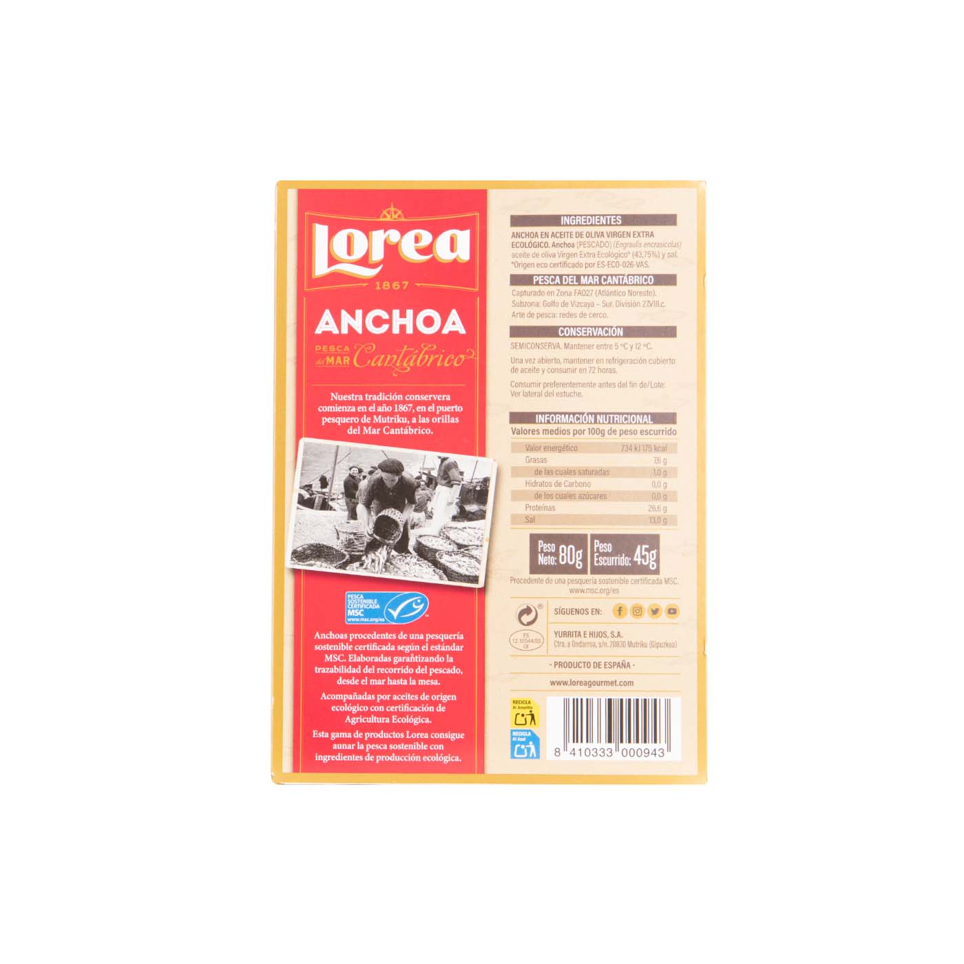 Las Anchoas del Cantábrico en AOVE Ecológico de Lorea Gourmet son anchoas de pura calidad y sabor excepcional que no te puedes perder.