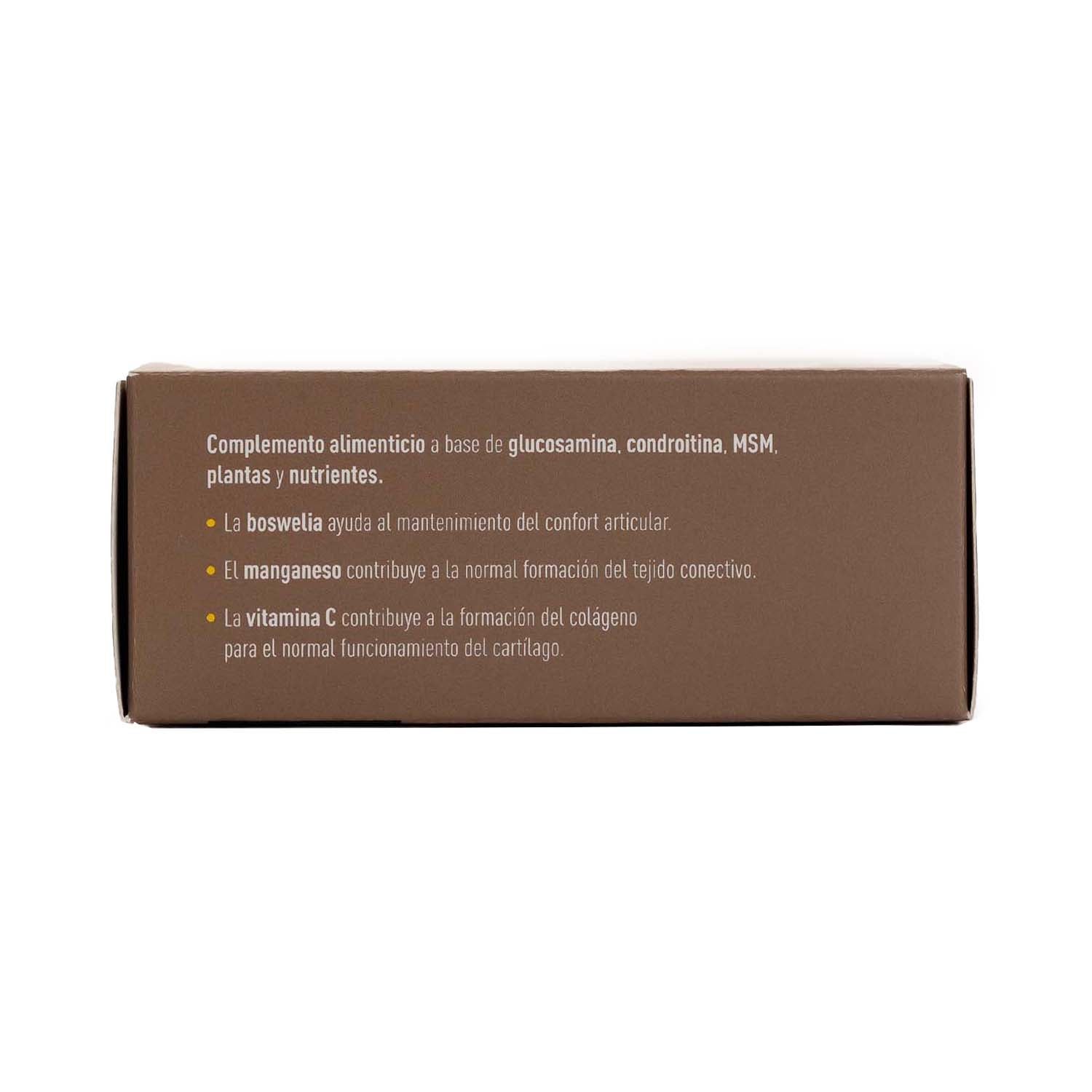 Complemento alimenticio Articular a base de glucosamina, condroitina, MSM, plantas y nutrientes. La boswelia ayuda al mantenimiento del confort articular. El manganeso contribuye a la normal formación del tejido conectivo. La vitamina C contribuye a la formación del colágeno para el normal funcionamiento del cartílago.
