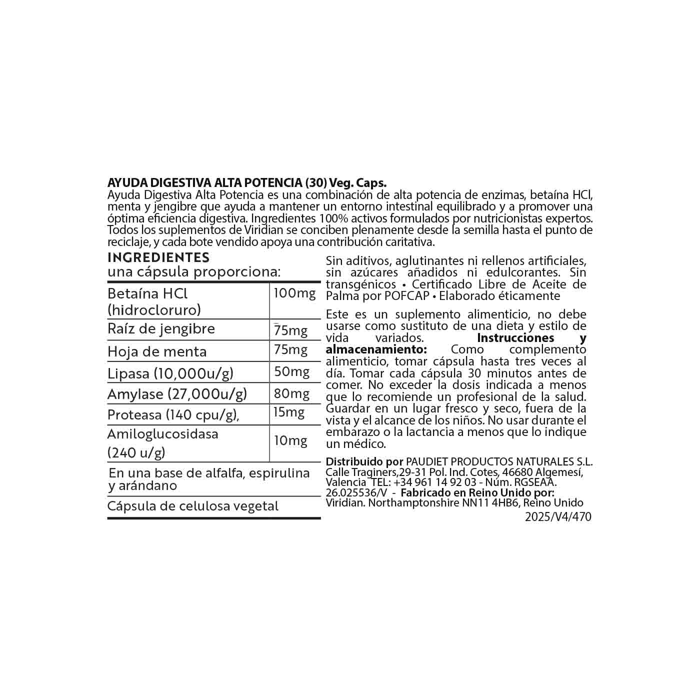 Ayuda Digestiva de Alta Potencia 30 cápsulas Viridian