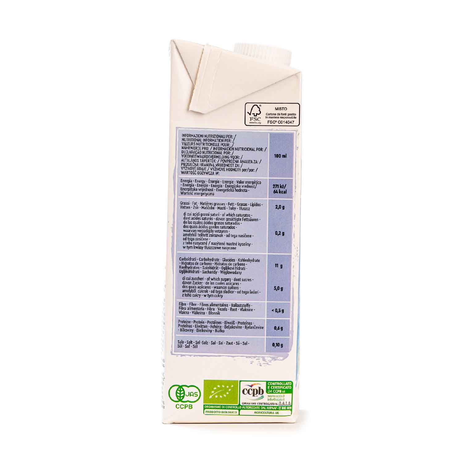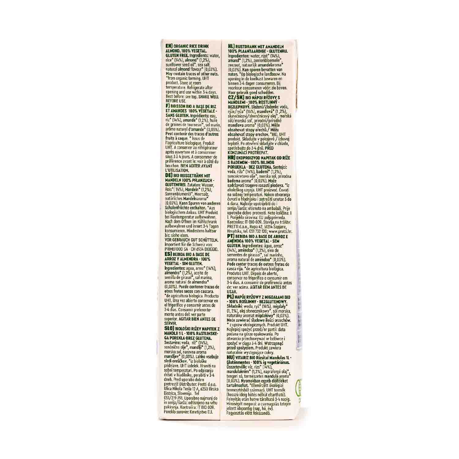 Agua, arroz* 14%, pasta de almendra* 1,2%, aceite de semilla de girasol*, sal marina, aroma natural de almendra*. *De agricultura biológica.
