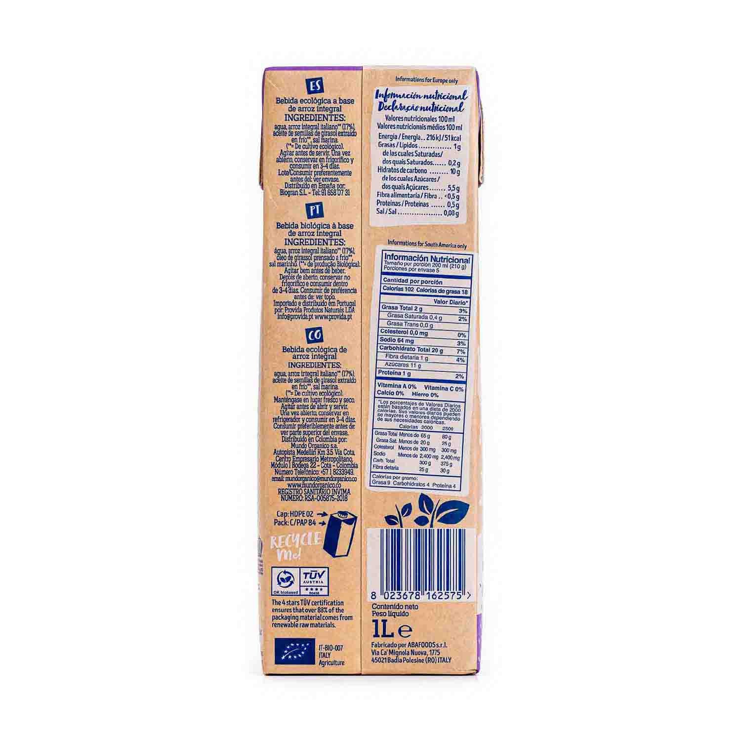 Bebida de Arroz Integral 1L Isola Bio
