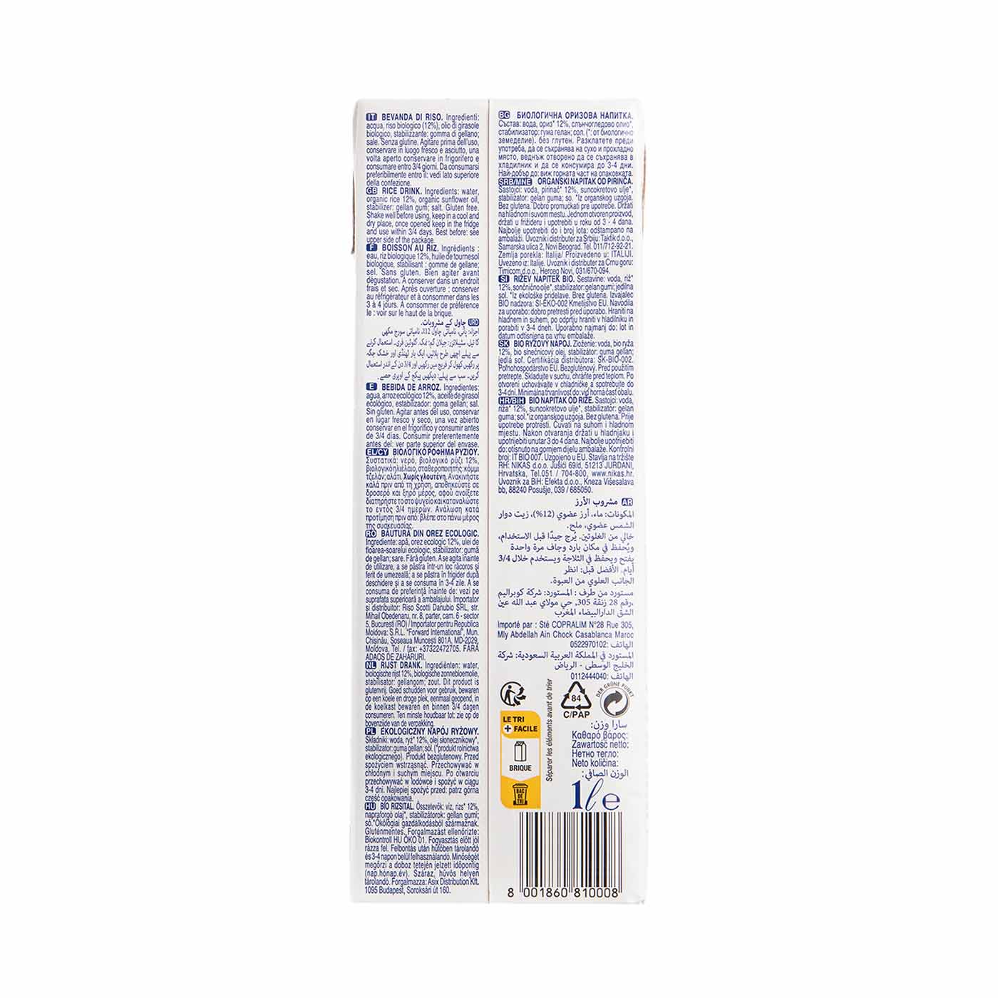 Agua, arroz ecológico(12%), aceite de girasol ecológico, estabilizador: goma gellan, sal. Sin gluten.