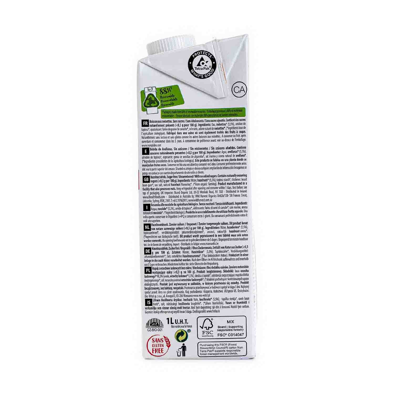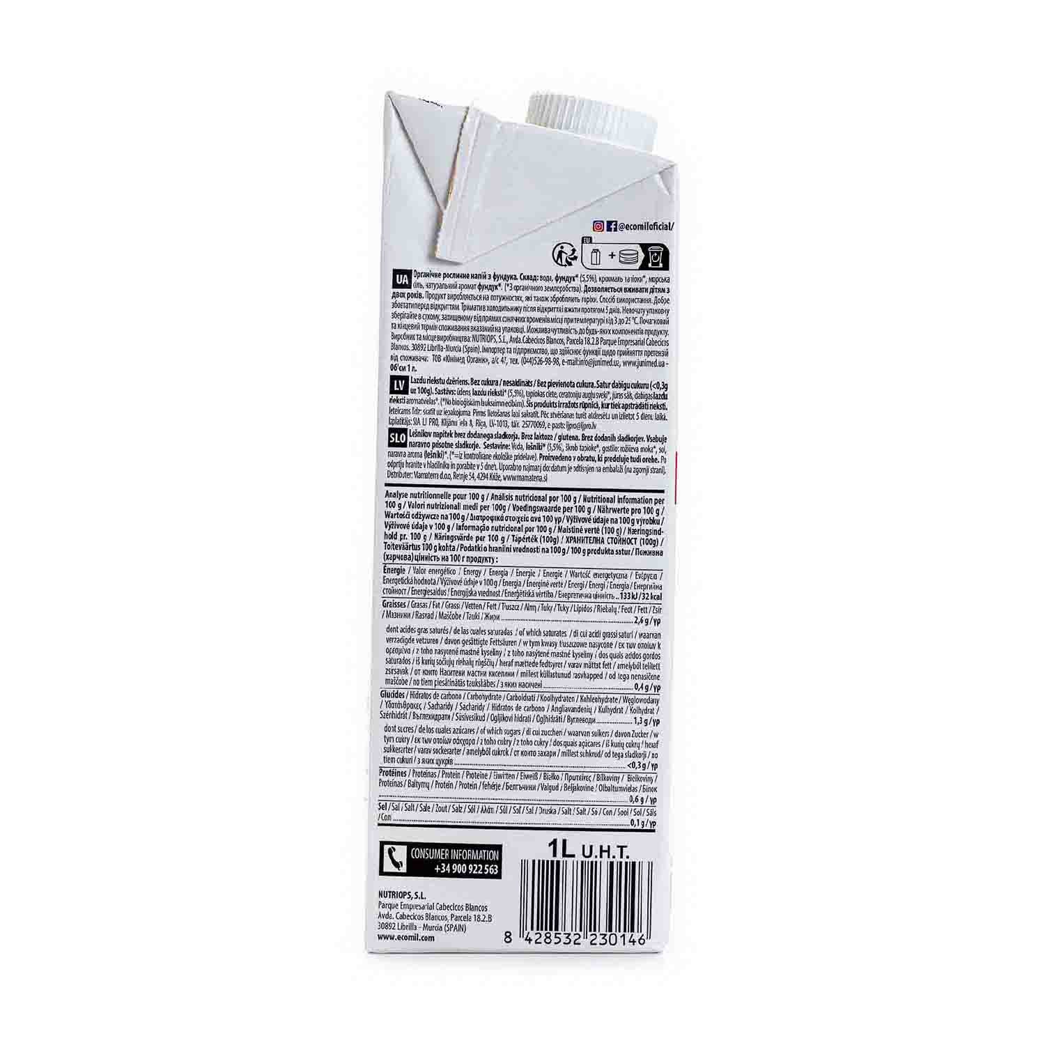 Bebida de avellana sin azúcar 1L Ecomil