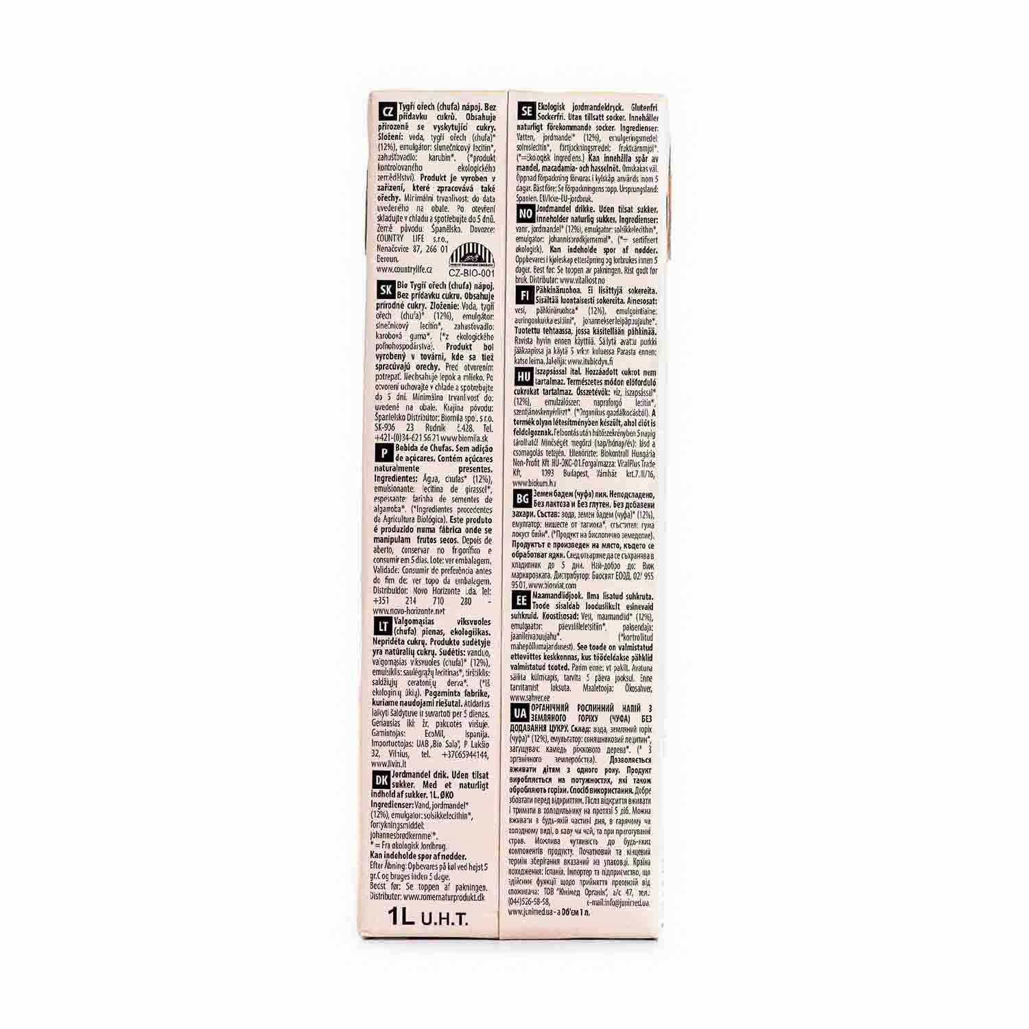 Agua, chufas* (12%), emulgente: lecitina de girasol*, espesante: goma de semillas de algarrobo*