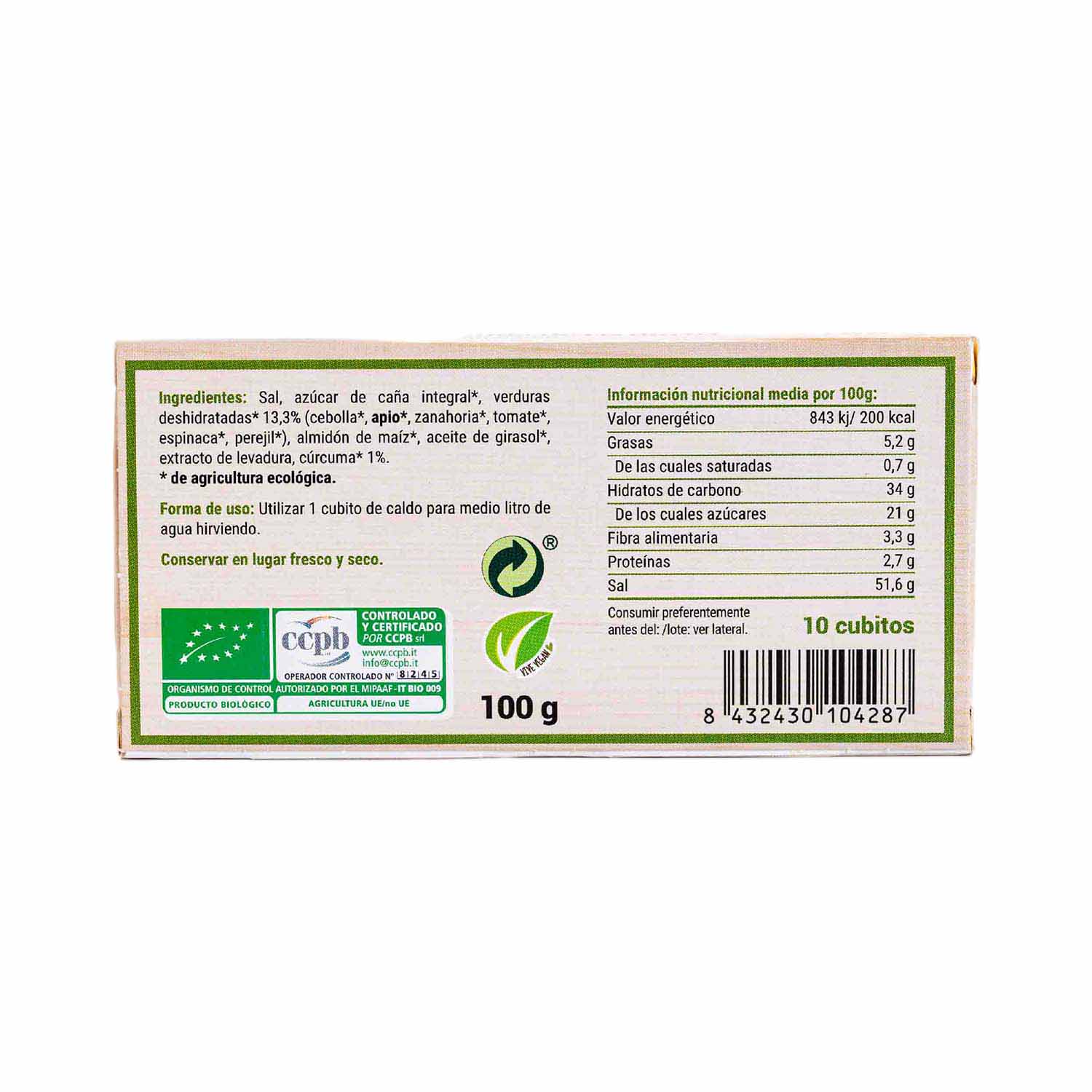 Opiniones de Bio Cubitos de Caldo de Verduras 100g Organic Sac