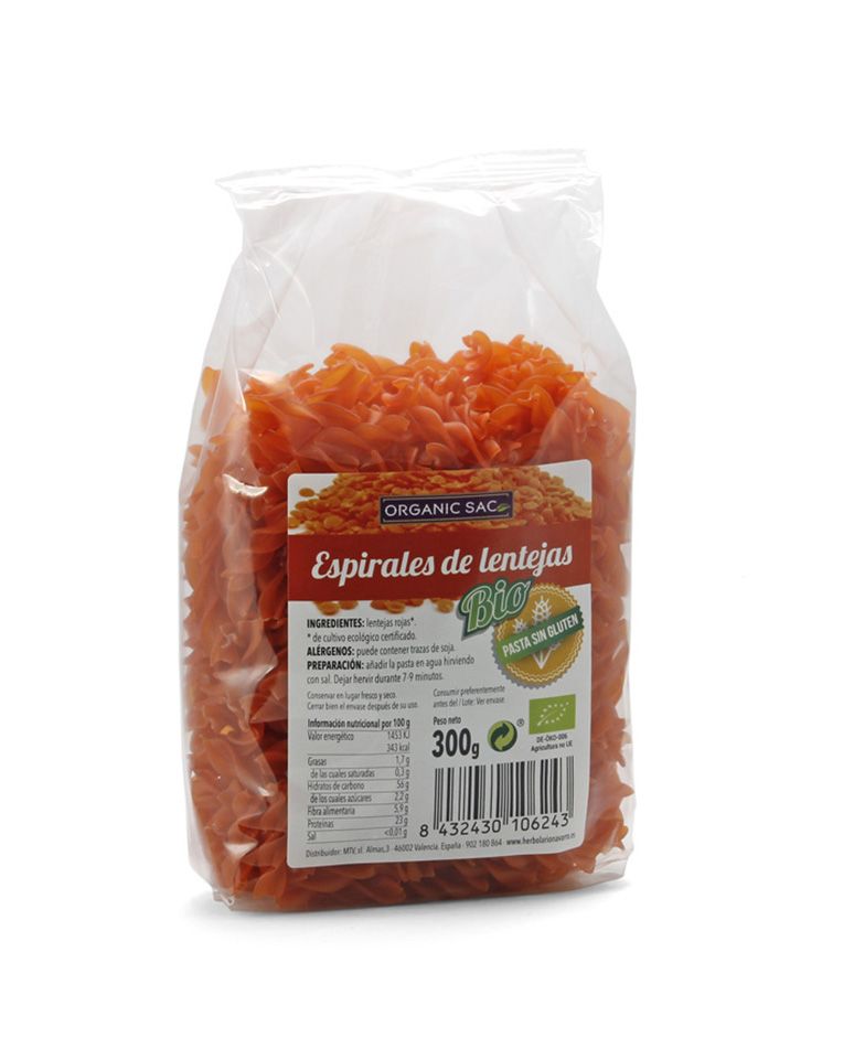 Bio espirales de lentejas 300g Organic Sac