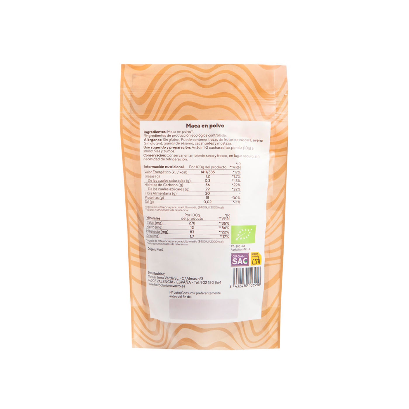Es un superalimento natural elaborado a partir de la raíz de maca andina cultivada de manera ecológica en las alturas de Perú. Conocida como el “ginseng peruano”, la maca es un tubérculo milenario utilizado tradicionalmente por sus propiedades energizantes, revitalizantes y de apoyo al equilibrio hormonal. Esta presentación en polvo facilita su incorporación a la dieta diaria, permitiendo añadirla a batidos, yogures, bebidas vegetales o recetas dulces y saladas.