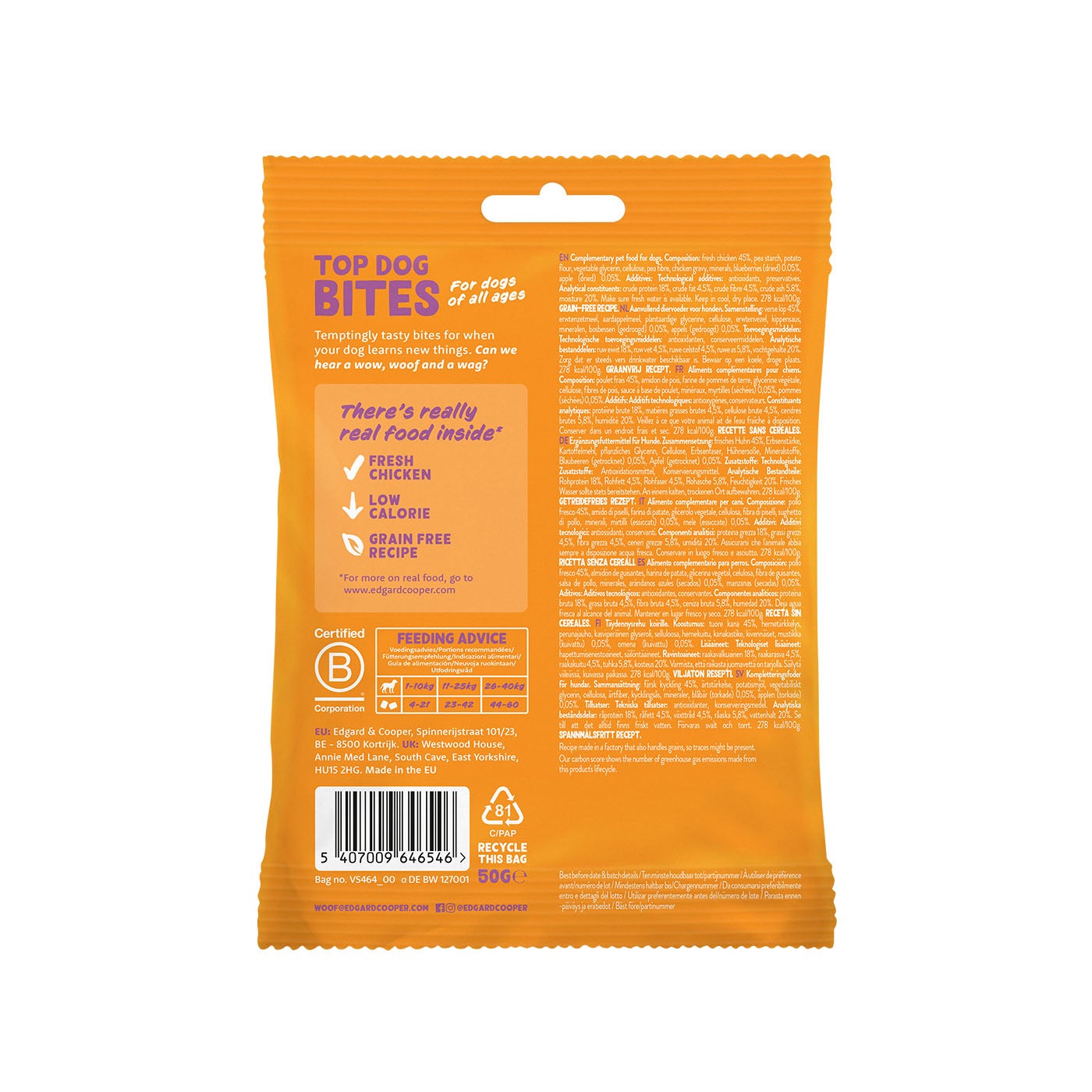 ¡Sabor irresistible, aprendizaje imparable!. Premia cada momento con los Bocaditos para perros adultos con pollo fresco de Edgard & Cooper. ¡Toda una delicia nutritiva!