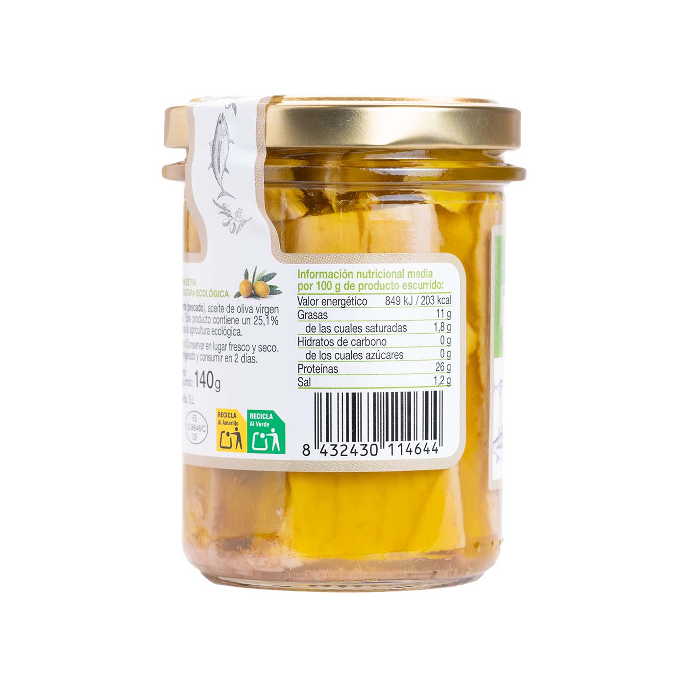 El Bonito en AOVE en Conserva de Organic Sac es una exquisitez gastronómica que combina lo mejor del bonito del norte con el sabor y la calidad del aceite de oliva virgen extra ecológico. Con un cuidadoso proceso de elaboración y una selección de ingredientes de primera calidad, cada lata ofrece un sabor auténtico y una experiencia culinaria inigualable. Este producto contiene un 25,1% de ingredientes procedentes de la agricultura ecológica.