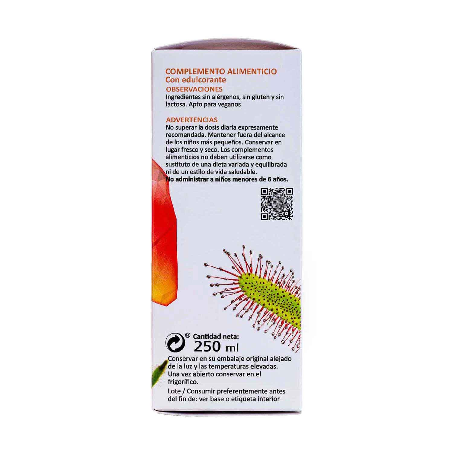 Advertencias: No superar la dosis diaria recomendada. Mantener fuera del alcance de los niños más pequeños. Los complementos alimenticios no deben utilizarse como sustituto de una dieta variada y equilibrada ni de un estilo de vida saludable. Conservar en lugar fresco y seco.