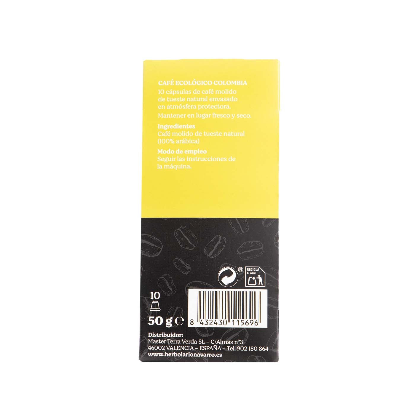 Café ecológico Colombia 10 cápsulas Organic Sac