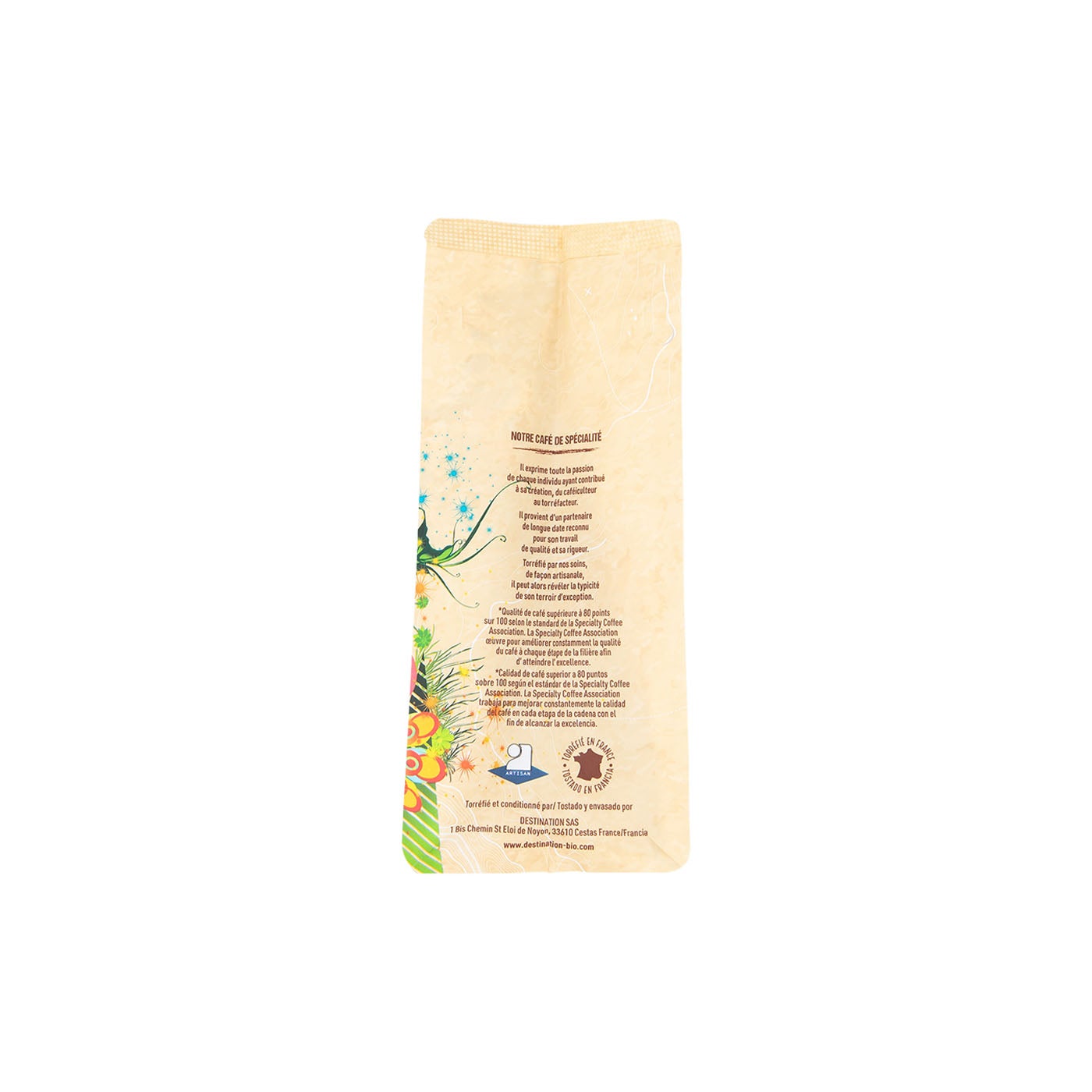 Café ecológico y de comercio justo con un sabor y aroma puro, con notas florales y frutales.