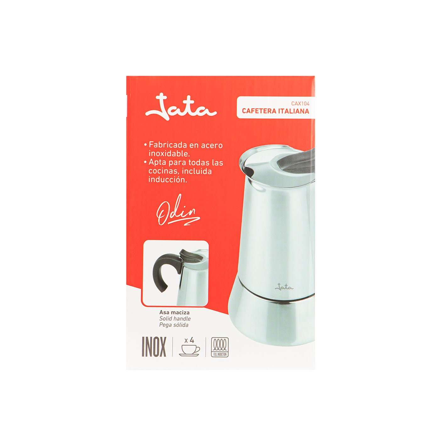 La Cafetera Italiana de Acero Inoxidable de Jata (4 servicios) es el aliado perfecto para preparar un auténtico café espresso en casa. Con capacidad para 4 tazas, está diseñada para adaptarse a cualquier tipo de cocina, incluyendo las de inducción. Su acabado pulido en espejo no solo le da un toque elegante, sino que también la convierte en una pieza duradera y resistente.