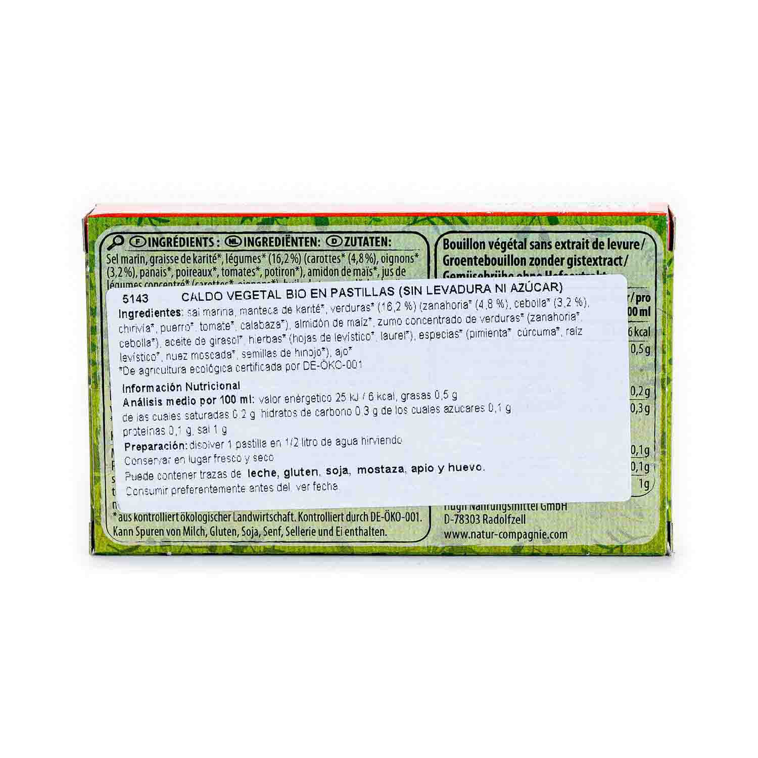 Caldo de Verduras Sin Levadura y Sin Azúcar 84g Natur Compagnie