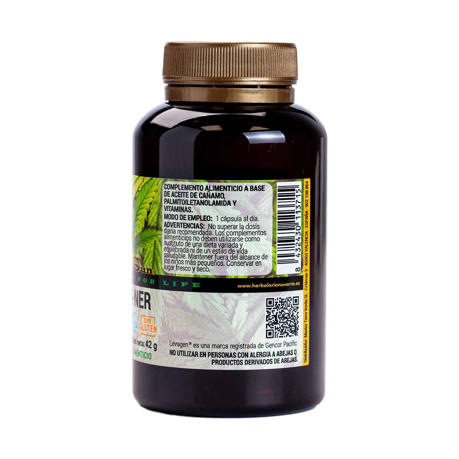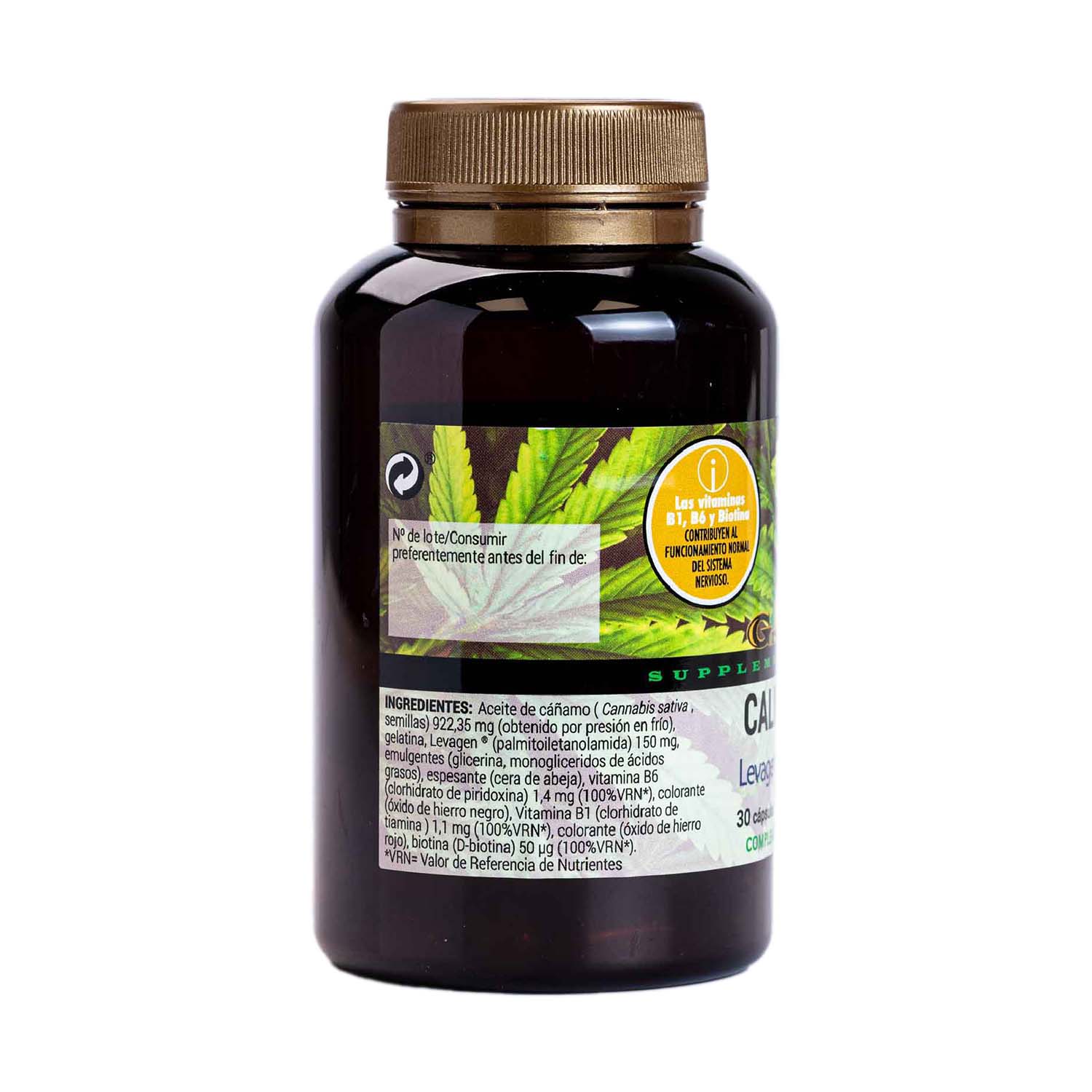 Ingredientes por 1 cápsula (dosis diaria): Aceite de cáñamo (Cannabis sativa, semillas) 922,35 mg (obtenido por presión en frío, gelatina), Levagen®