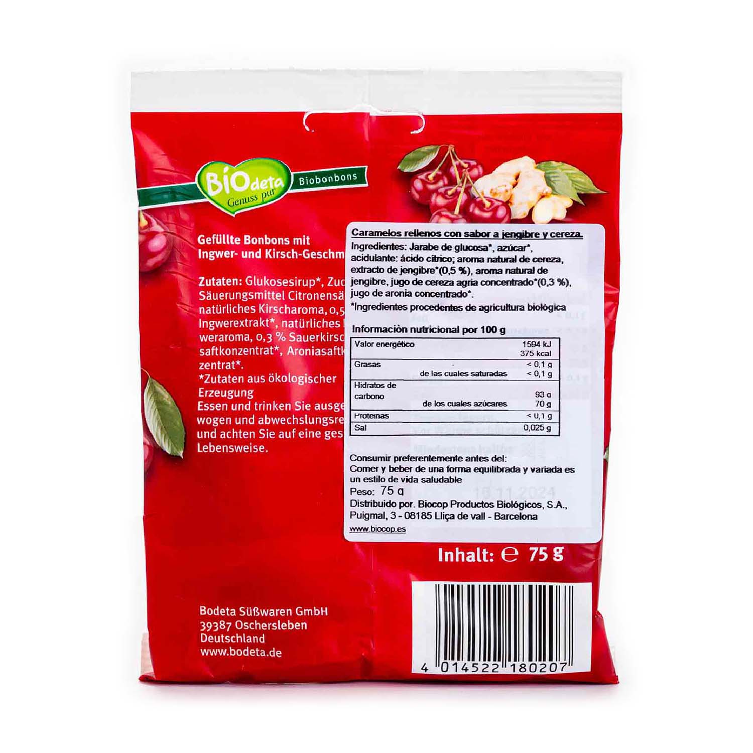 Caramelos Rellenos de Jengibre y Cereza 75g Biodeta