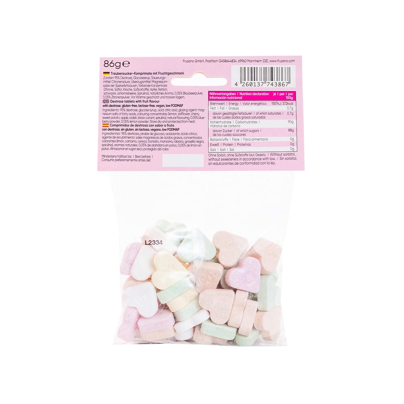 Los caramelos sabor Fruta de Dextrosa sin Fructosa de Frusano están especialmente formulados para ser consumidos por personas con sensibilidad o intolerancia a la fructosa y siguen una dieta baja en fructosa y FODMAP.