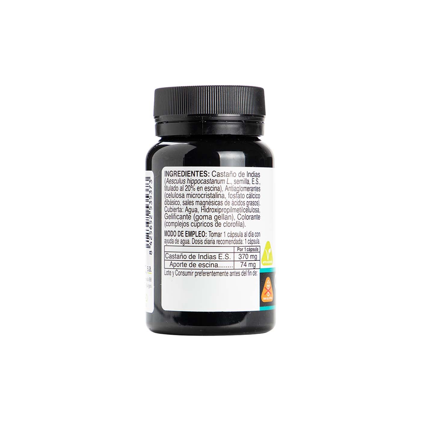 Por 1 cápsula: Castaño de Indias E.S.: 370 mg, Aporte de escina: 74 mg