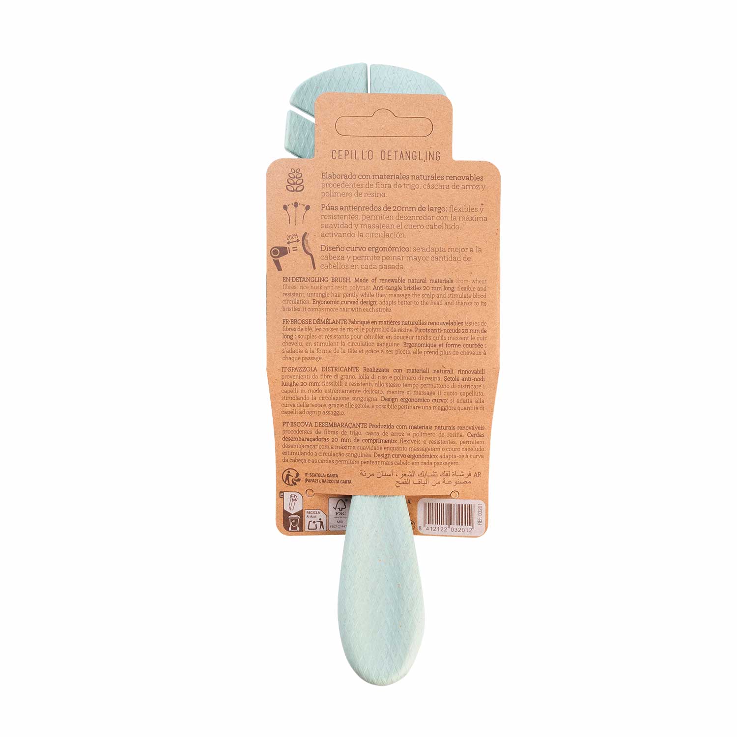 Tu peinado más natural. Elaborado en materiales naturales renovables procedentes de fibras de trigo, cáscara de arroz y polímero de resina. Reciclable, reusable y sostenible. Pack 100% en cartón certificado FSC.