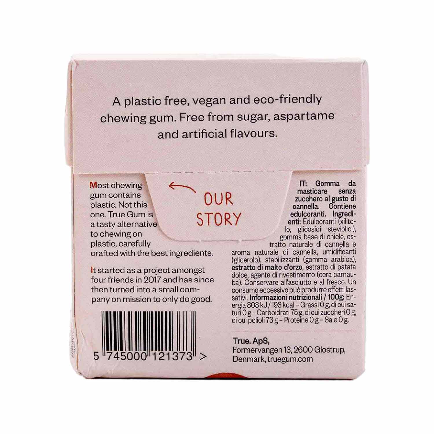 El sabor cálido de la canela, la frescura sin plásticos y la dulzura natural de los chicles veganos de True Gum sabor Canela. ¡Para disfrutar en cada mordisco!