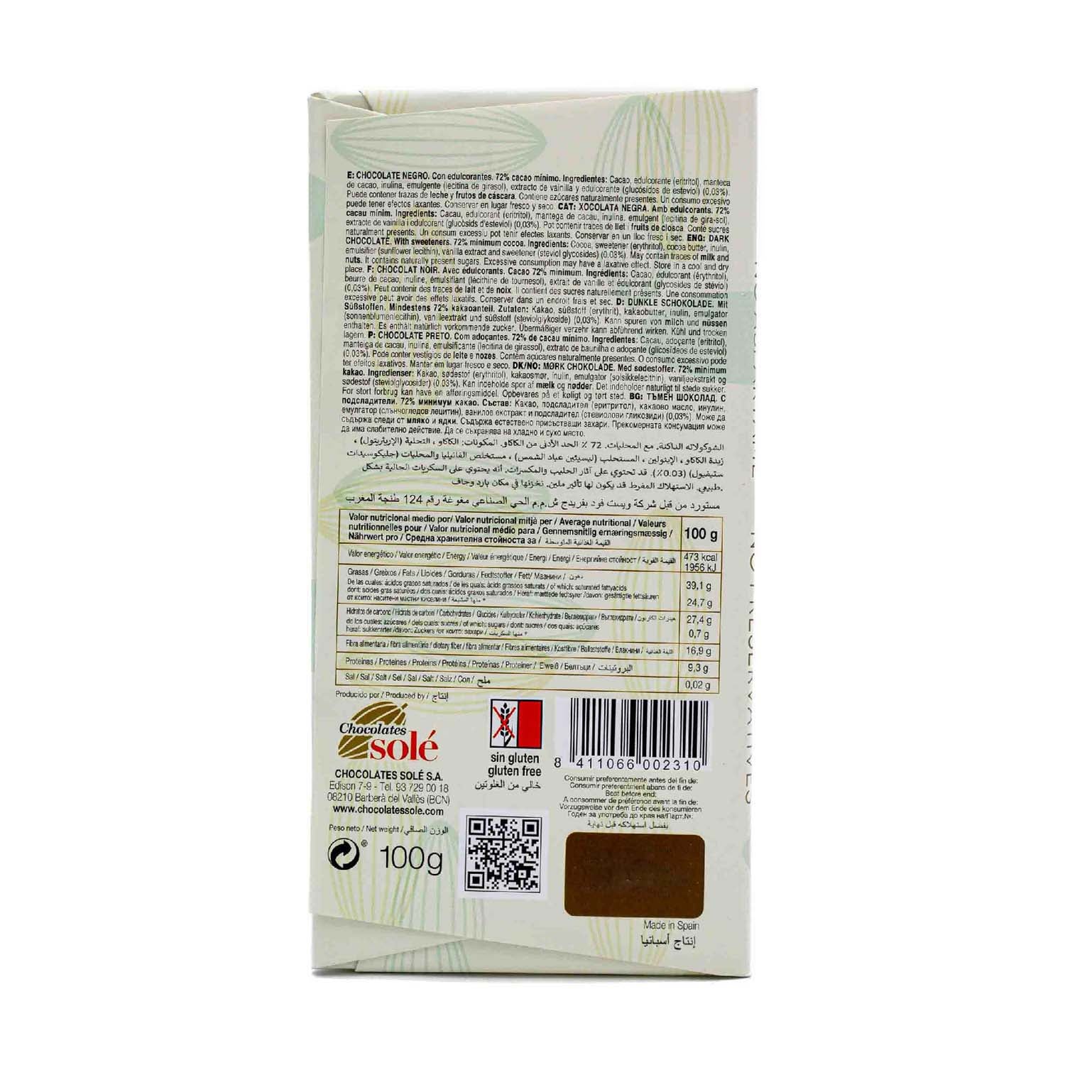 Chocolate Bitter 72% de Cacao con Stevia 100g Chocolate Solé