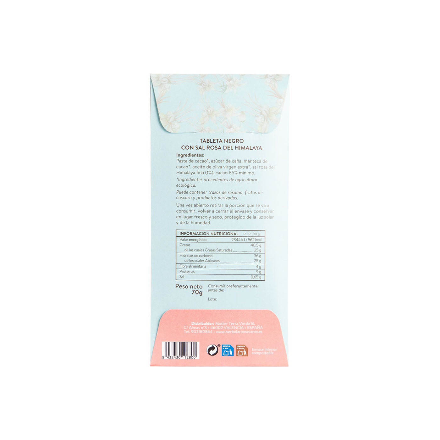 Chocolate Negro 85% Vegano con Sal Rosa del Himalaya 70g Bio Cesta