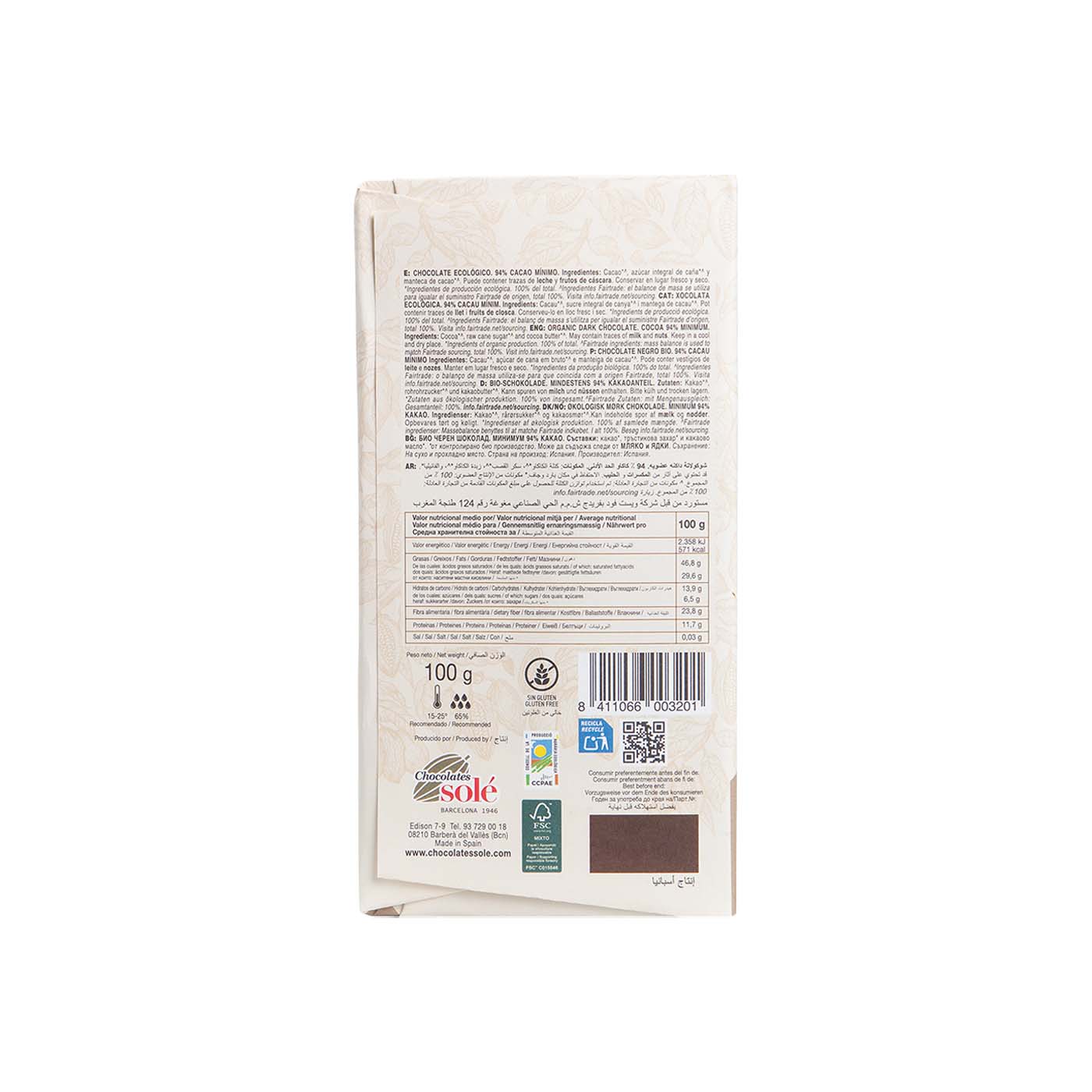 Chocolate Negro 94% Cacao 100g Chocolate Solé