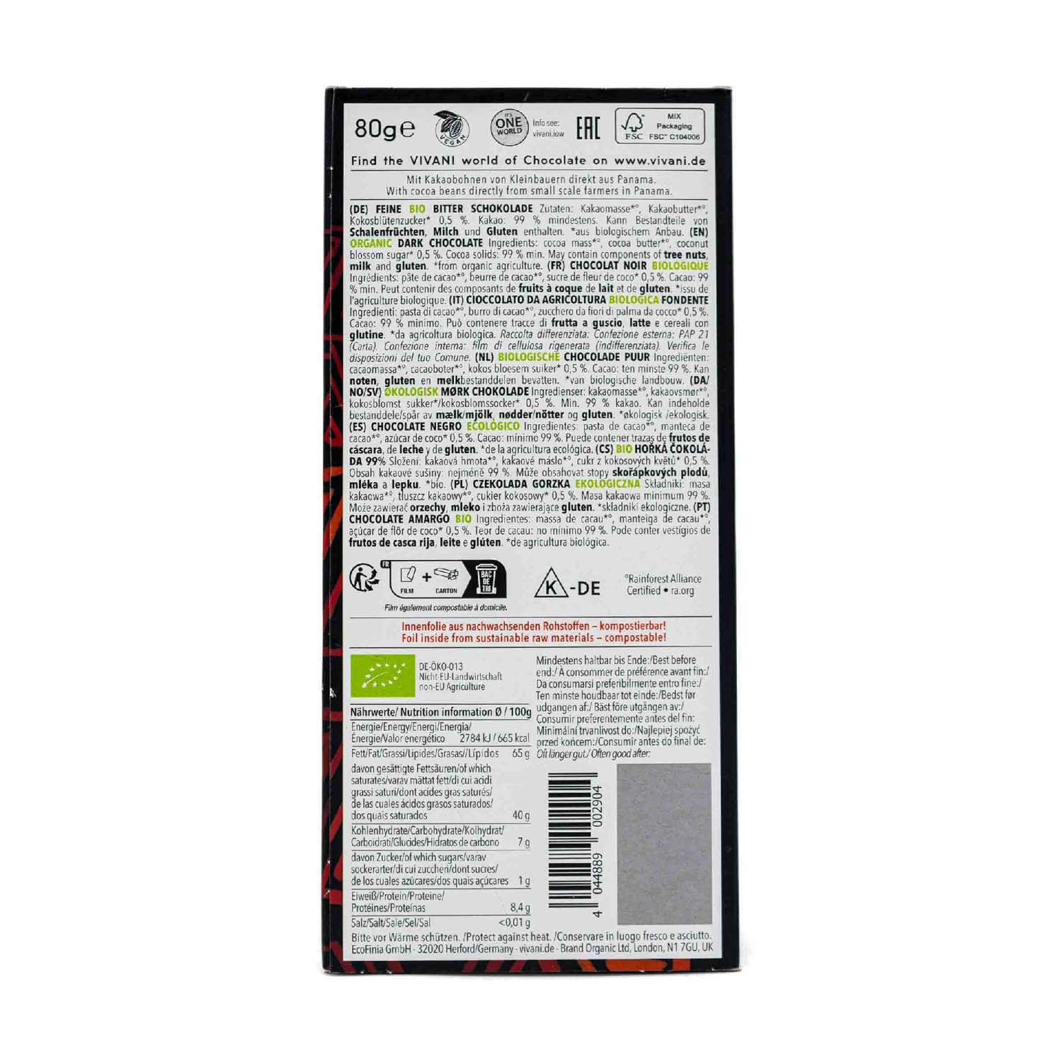 Sumérgete en la intensidad del cacao panameño con el chocolate negro 99% de Vivani. Es una excelente opción para degustar en pequeñas porciones en cualquier momento del día.