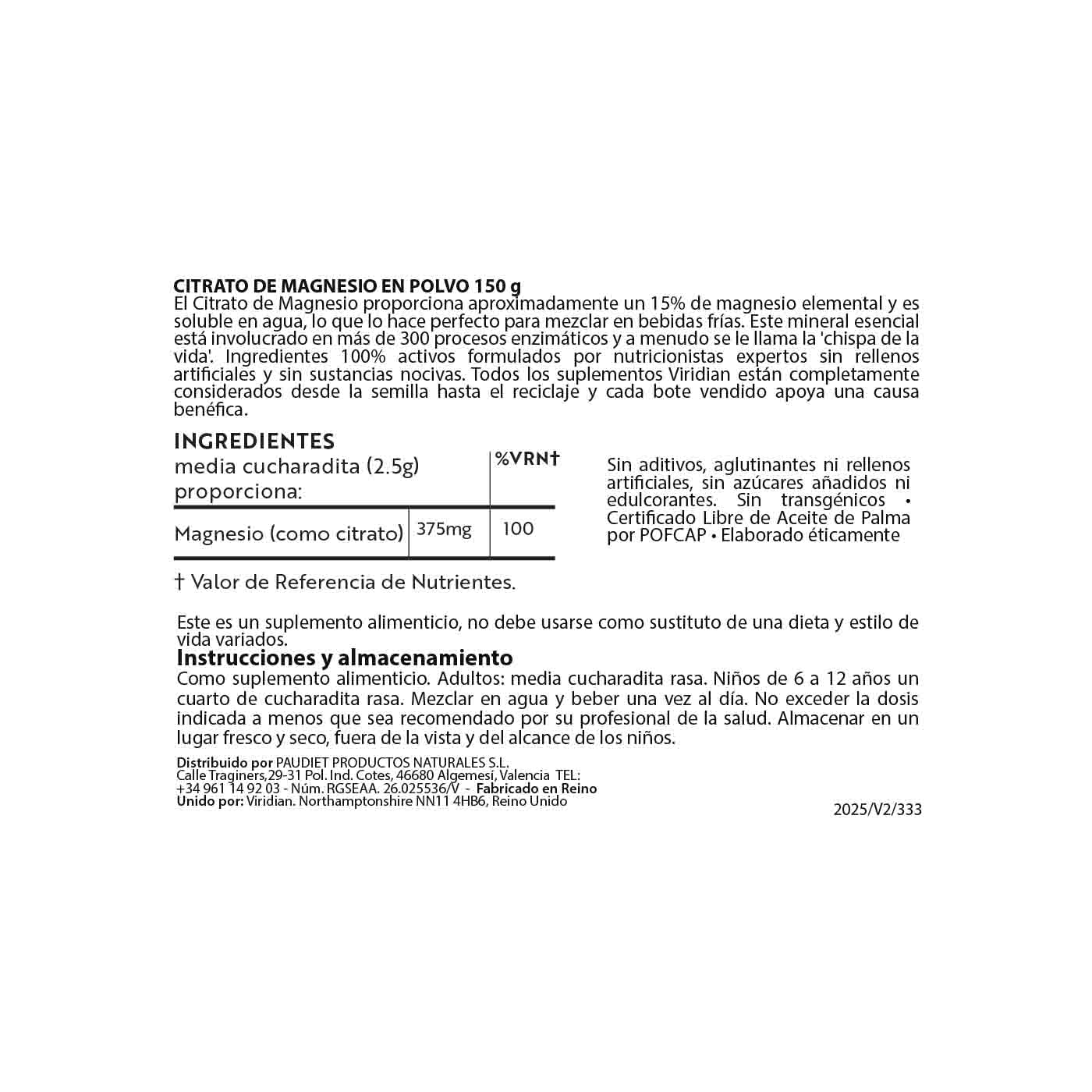 Citrato de Magnesio En Polvo Viridian