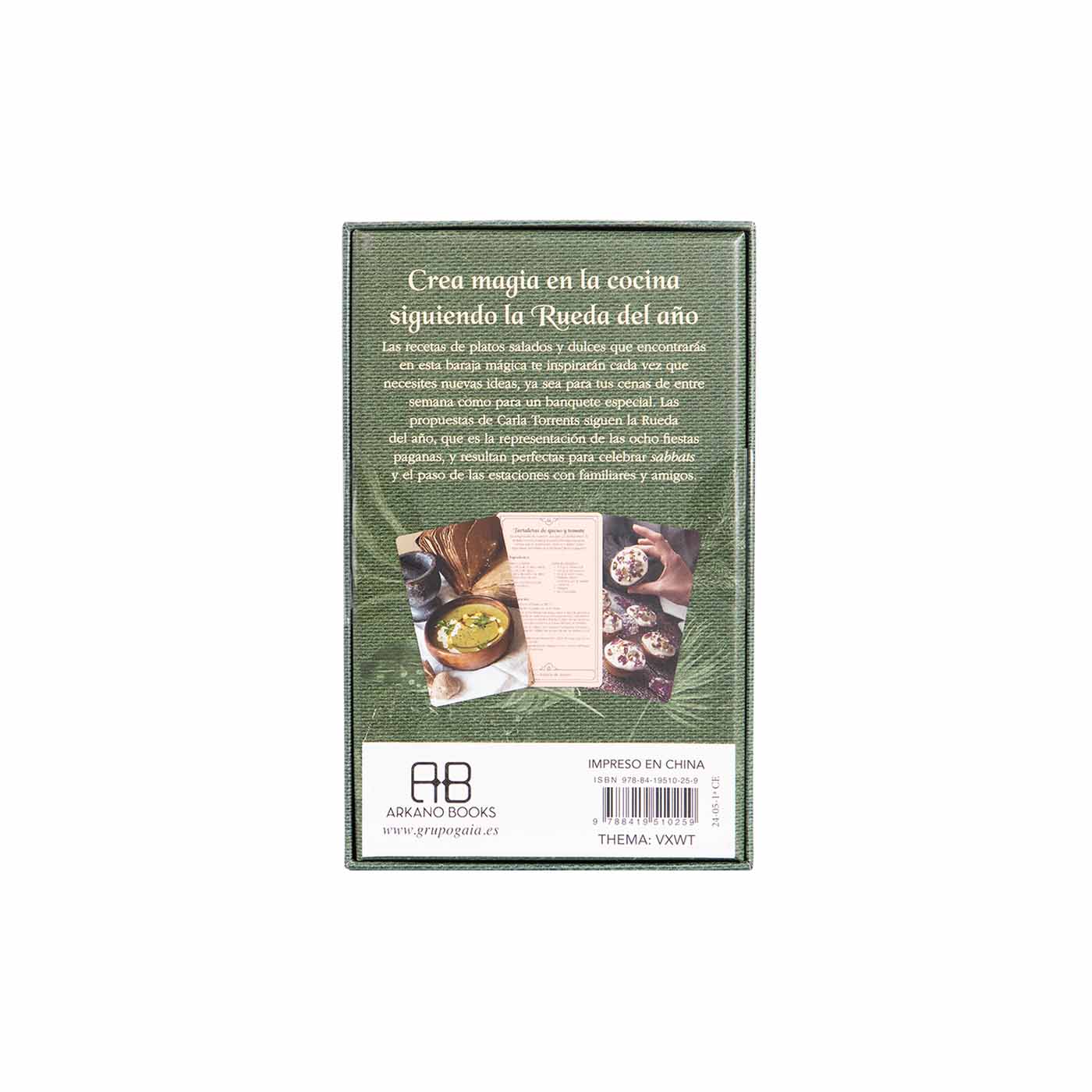 Encantadora colección de 52 cartas de recetas creada por Carla Torrents Murcia y publicada por Arkano Books en 2024. Inspirada en la Rueda del Año, que representa las ocho festividades paganas, esta baraja ofrece platos salados y dulces diseñados para celebrar los sabbats y el cambio de estaciones con familiares y amigos.