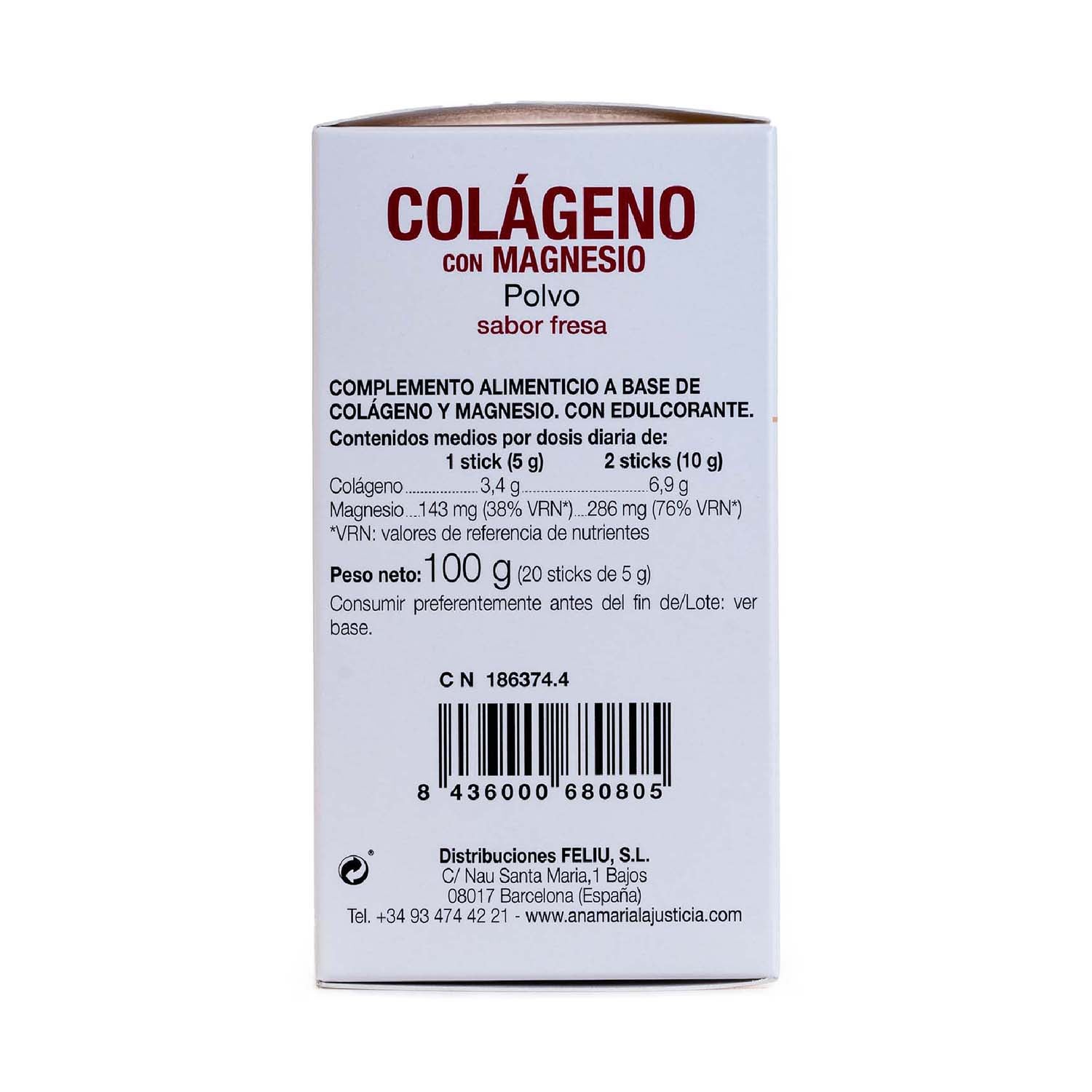 Colágeno con magnesio sticks sabor fresa 20uds Ana María Lajusticia