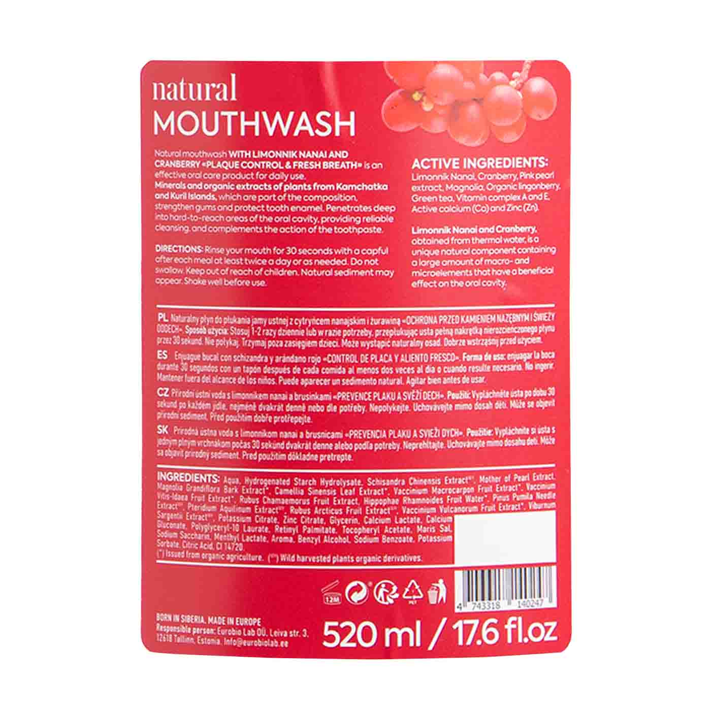 Es un enjuague bucal natural formulado con extractos orgánicos de plantas silvestres de Kamchatka y las islas Kuriles. Su combinación de schizandra y arándano rojo, obtenidos del agua termal, aporta una gran cantidad de minerales y antioxidantes que fortalecen las encías y protegen el esmalte dental. Además, su fórmula penetra en las zonas de difícil acceso de la cavidad bucal, proporcionando una limpieza profunda y complementando el cepillado diario.