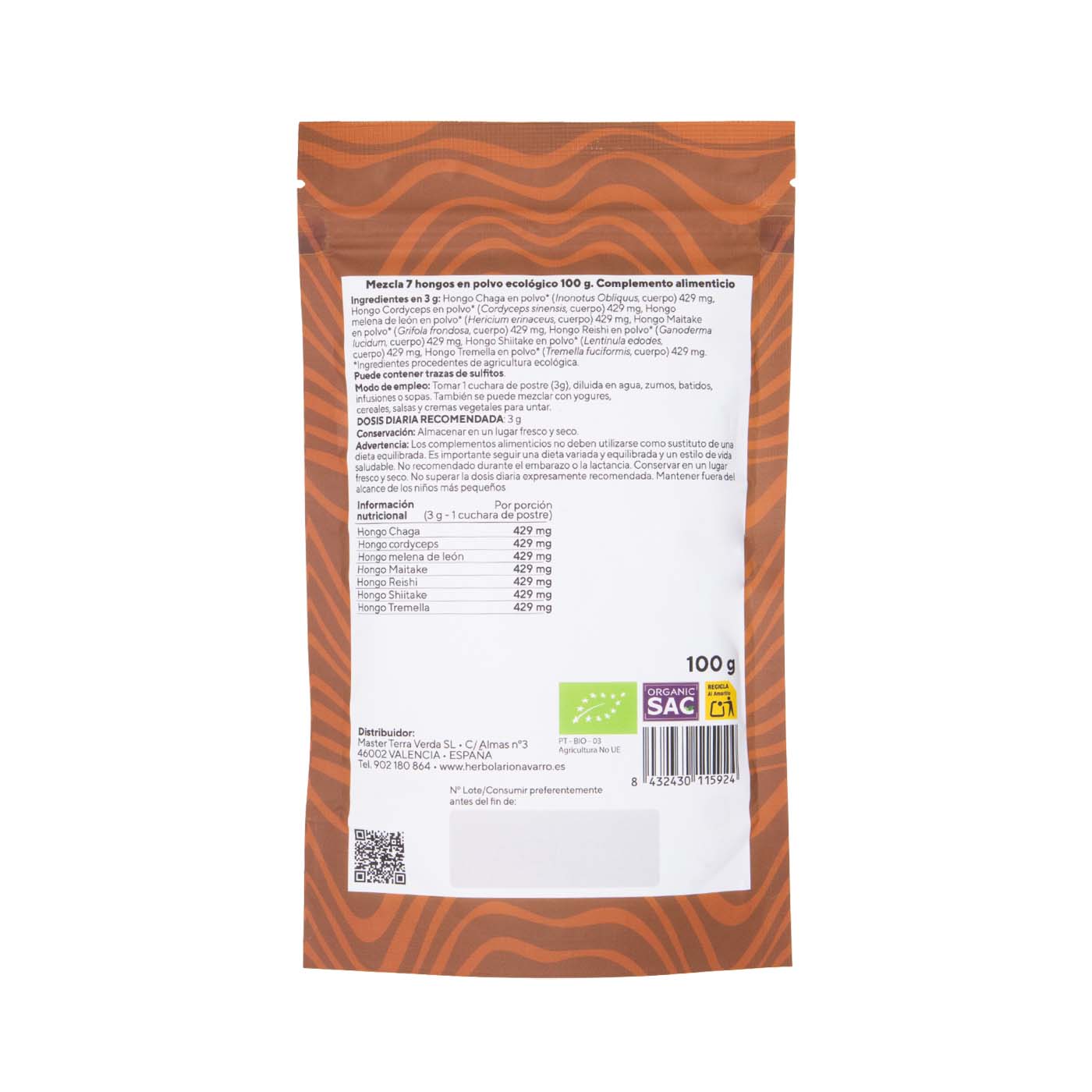 Complejo 7 hongos en polvo 100g Organic Sac