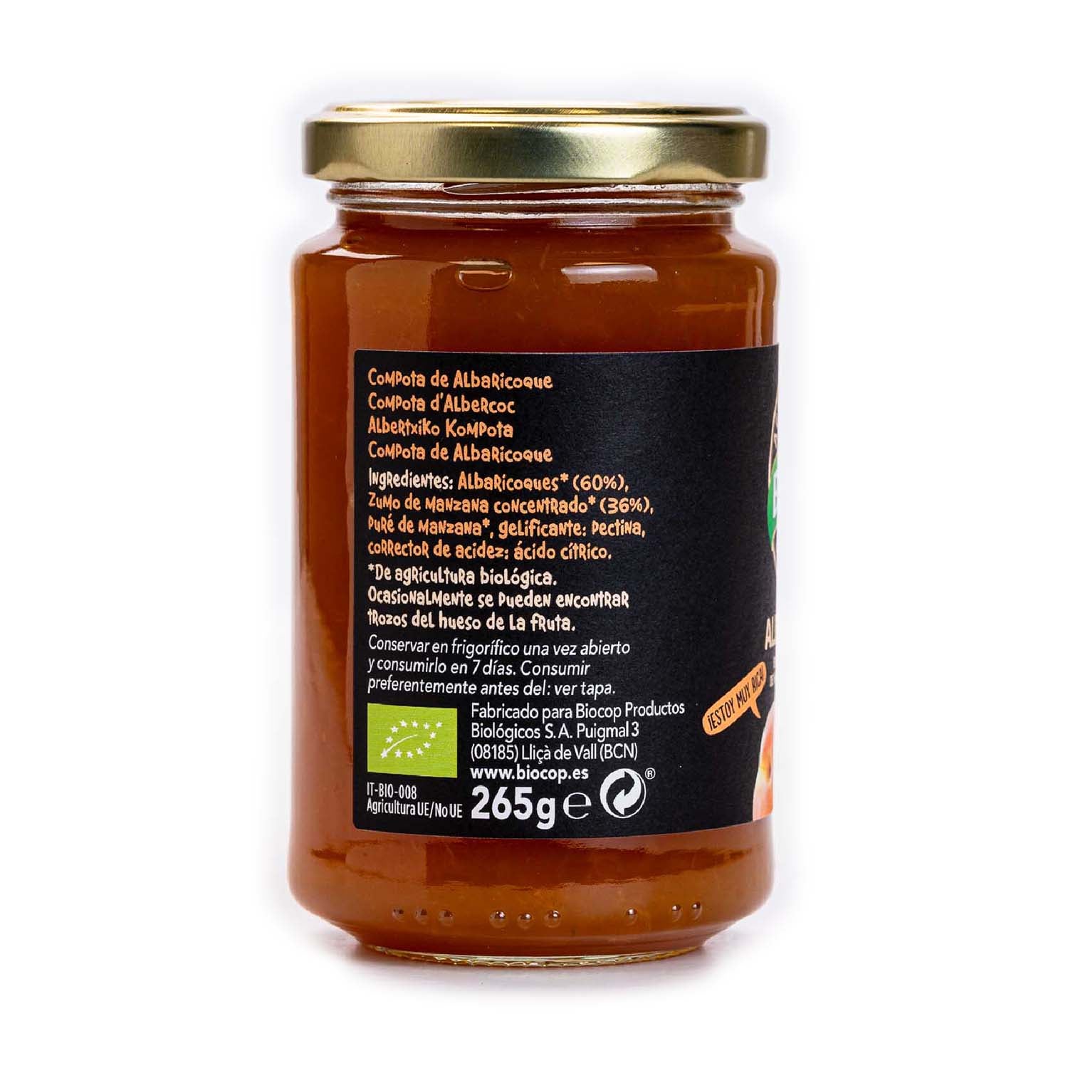 Albaricoques* 60%, zumo de manzana concentrado* 38%, gelificante: pectina, corrector de acidez: ácido cítrico.