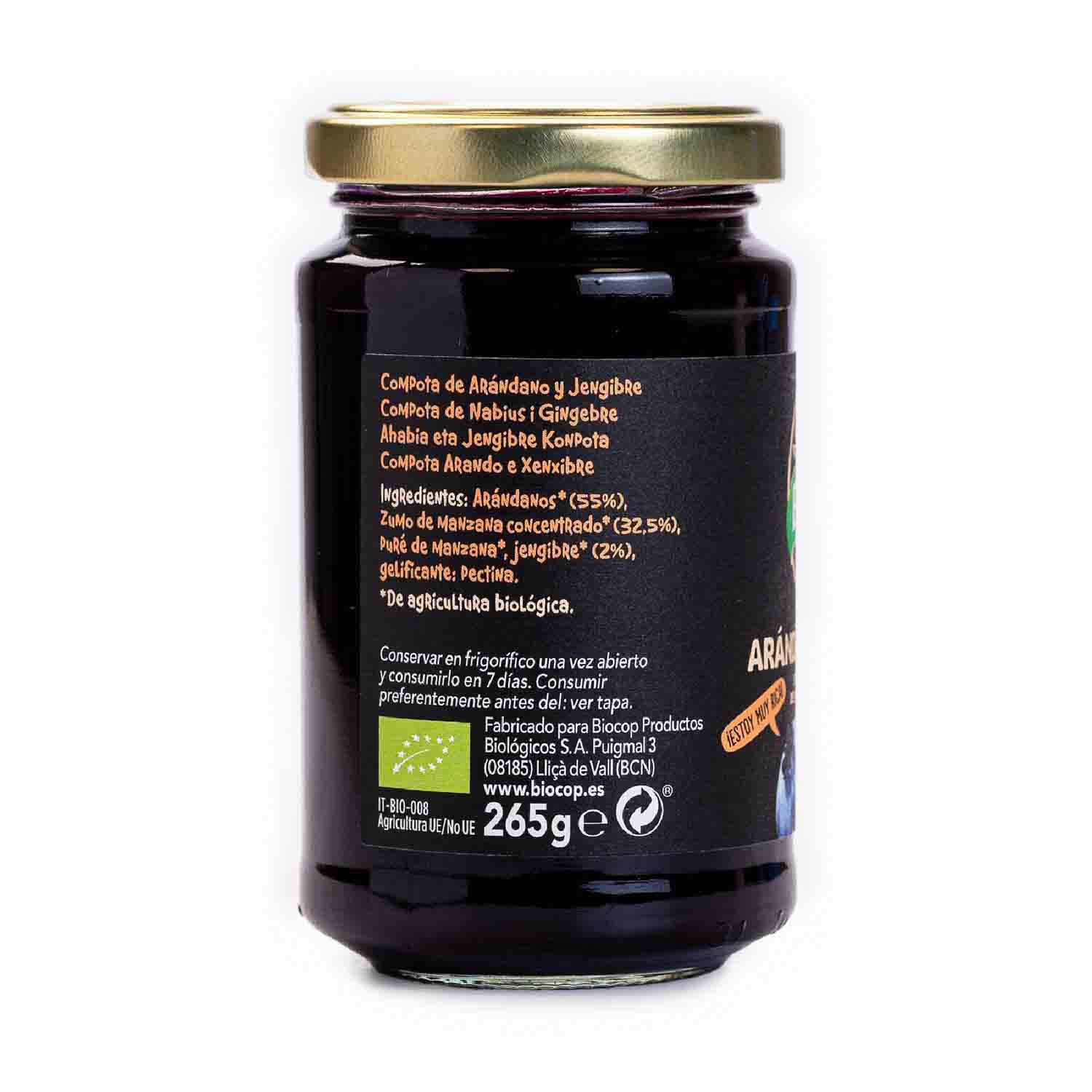 Esta compota de arándanos y jengibre de Biocop está endulzada con zumo de manzana concentrado. Elaborada con fruta madura y una cocción mínima para garantizar todo el sabor y aroma natural de la fruta.