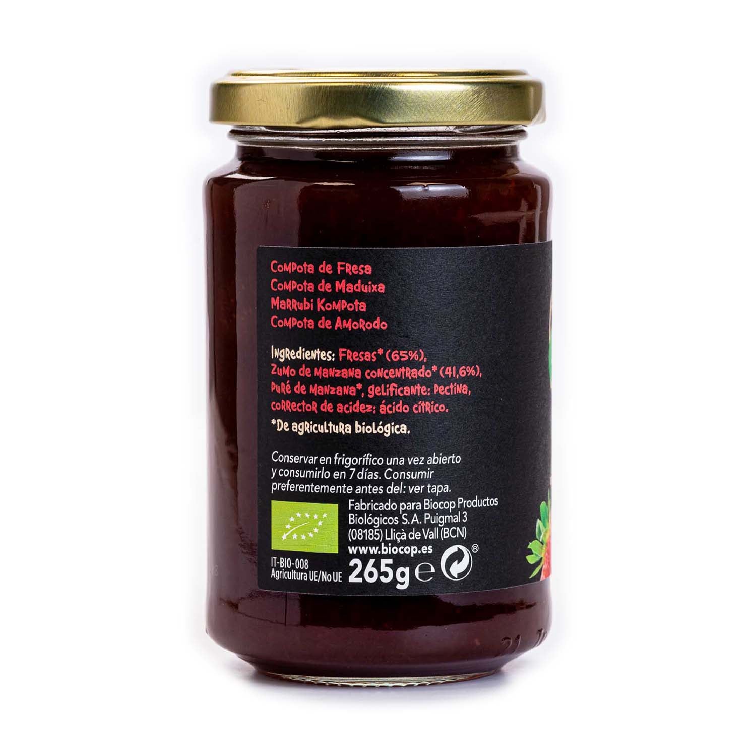 Fresas* 65%, zumo de manzana concentrado* 33%, gelificante: pectina, corrector de acidez: ácido cítrico.