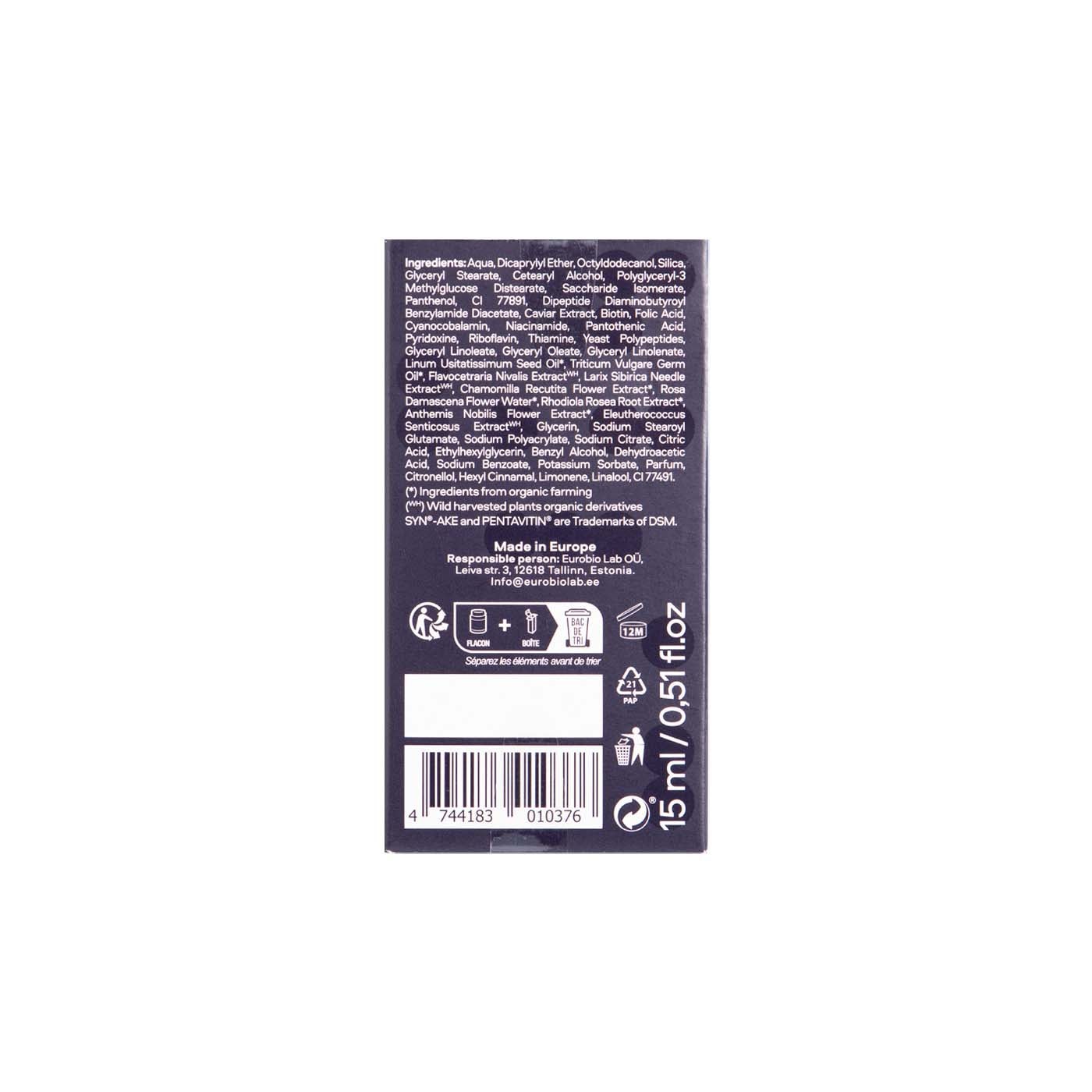 Aqua, Dicaprylyl Ether, Octyldodecanol, Silica, Glyceryl Stearate, Cetearyl Alcohol, Polyglyceryl-3 Methylglucose Distearate, Saccharide Isomerate, Panthenol, CI 77891, Dipeptide Diaminobutyroyl Benzylamide Diacetate, Caviar Extract, Biotin, Folic Acid, Cyanocobalamin, Niacinamide, Pantothenic Acid, Pyridoxine, Riboflavin, Thiamine, Yeast Polypeptides, Glyceryl Linoleate, Glyceryl Oleate, Glyceryl Linolenate, Linum Usitatissimum Seed Oil*, Triticum Vulgare Germ Oil*, Flavocetraria Nivalis ExtractWH, Larix Sibirica Needle ExtractWH, Chamomilla Recutita Flower Extract*, Rosa Damascena Flower Water*, Rhodiola Rosea Root Extract*, Anthemis Nobilis Flower Extract*, Eleutherococcus Senticosus ExtractWH, Glycerin, Sodium Stearoyl Glutamate, Sodium Polyacrylate, Sodium Citrate, Citric Acid, Ethylhexylglycerin, Benzyl Alcohol, Dehydroacetic Acid, Sodium Benzoate, Potassium Sorbate, Parfum, Citronellol, Hexyl Cinnamal, Limonene, Linalool, Cl 77491.