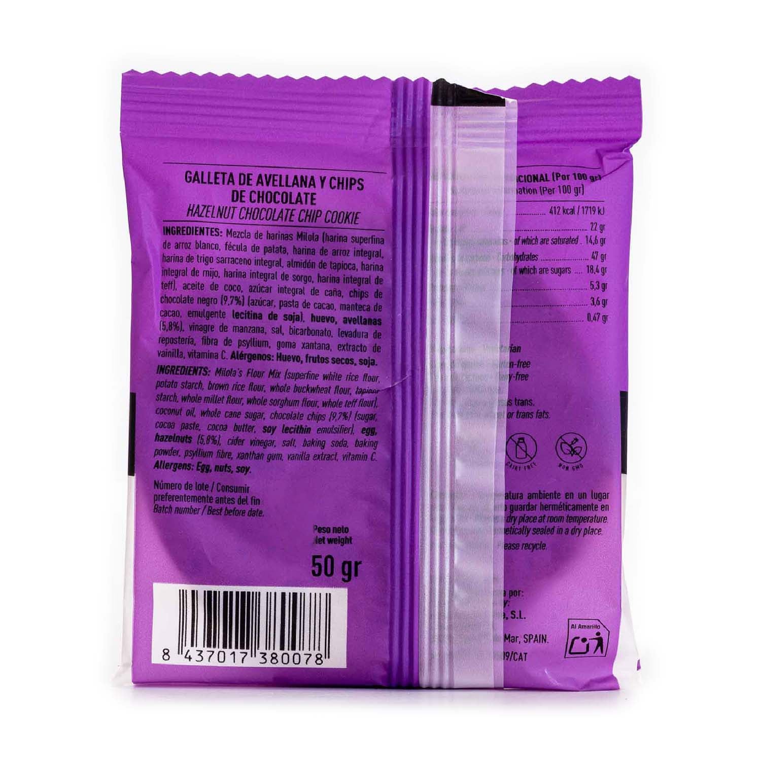 Cookie sin gluten con avellana y chips de chocolate 50g Milola