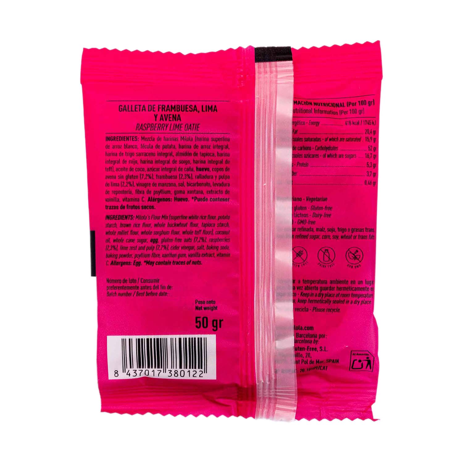 Cookie sin gluten con avena, frambuesa y lima 50g Milola