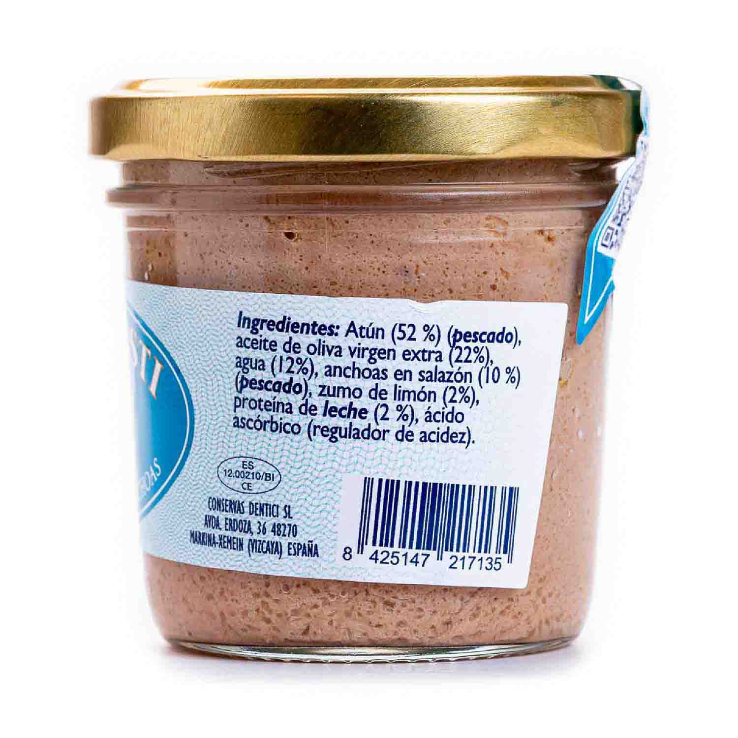 Atún (56%), aceite de oliva (21%), anchoas del Cantábrico en salazón (10%), zumo de limón, proteína de leche.