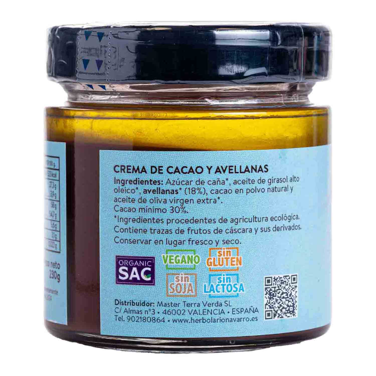 Crema de Cacao y Avellanas 230g Organic Sac