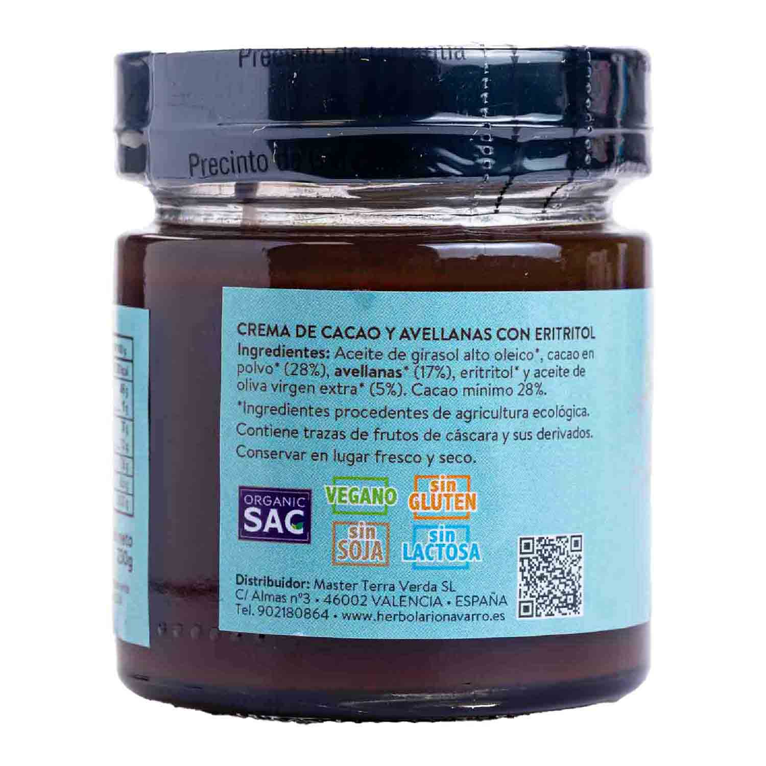 Crema de Cacao y Avellanas con Eritritol 230g Organic Sac