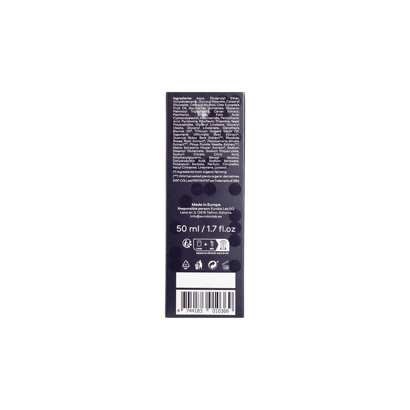 Aqua, Dicaprylyl Ether, Octyldodecanol, Glyceryl Stearate, Cetearyl Glucoside, Cetearyl Alcohol, Olea Europaea Fruit Oil, Saccharide Isomerate, Glycerin, Palmitoyl Tripeptide-5, Caviar Extract, Panthenol, Biotin, Folic Acid, Cyanocobalamin, Niacinamide, Pantothenic Acid, Pyridoxine, Riboflavin, Thiamine, Yeast Polypeptides, Glyceryl Linoleate, Glyceryl Oleate, Glyceryl Linolenate, Oenothera Biennis Oil*, Triticum Vulgare Germ Oil, Saponaria Officinalis Root Extract*, Quercus Robur Bark ExtractWH, Rhodiola Rosea Root Extract*, Flavocetraria Nivalis ExtractWH, Pinus Pumila Needle ExtractWH, Malva Sylvestris Flower Extract*, Sodium Stearoyl Glutamate, Sodium Polyacrylate, Sodium Citrate, Citric Acid, Ethylhexylglycerin, Benzyl Alcohol, Dehydroacetic Acid, Sodium Benzoate, Potassium Sorbate, Parfum, Citronellol, Hexyl Cinnamal, Limonene, Linalool.