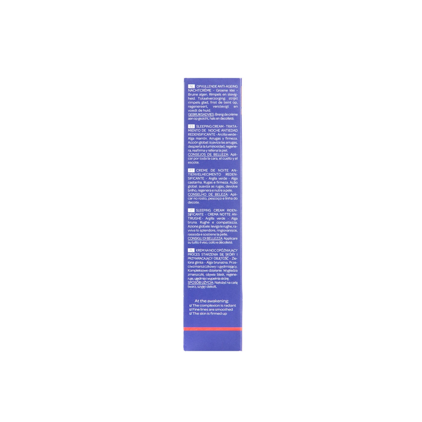 Aplícala cada noche sobre la piel limpia y seca. Toma una pequeña cantidad de crema y distribúyela uniformemente sobre el rostro y el cuello, realizando un suave masaje con movimientos circulares ascendentes hasta su total absorción.